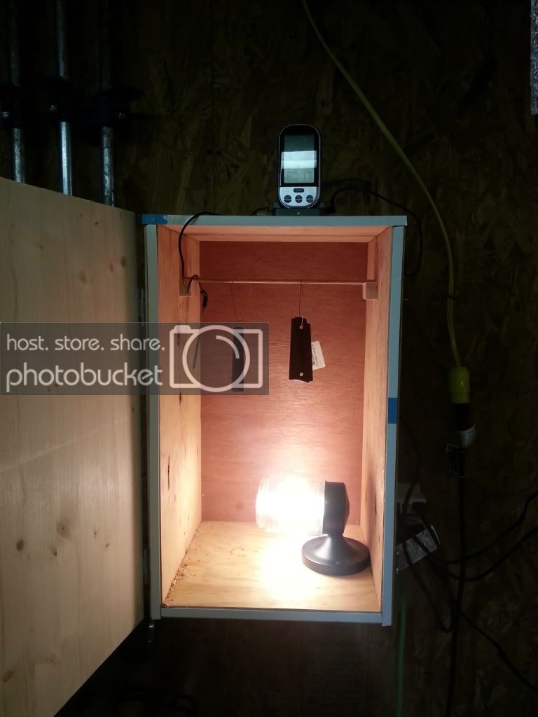 I'll get right to the point here. I'm thinking about building a box with a hinged front and a heat lamp, like the kind you'd use to keep baby chicks warm, on top of it to keep the inside of the box hot. Then I could put my PR molds inside and keep them warm while the PR gelled and set. I do not have the luxury of a heated shop and I simply cannot pour inside the house. So this seems like my only option during the cold months. All thoughts, comments and suggestions appreciated. Thanks.