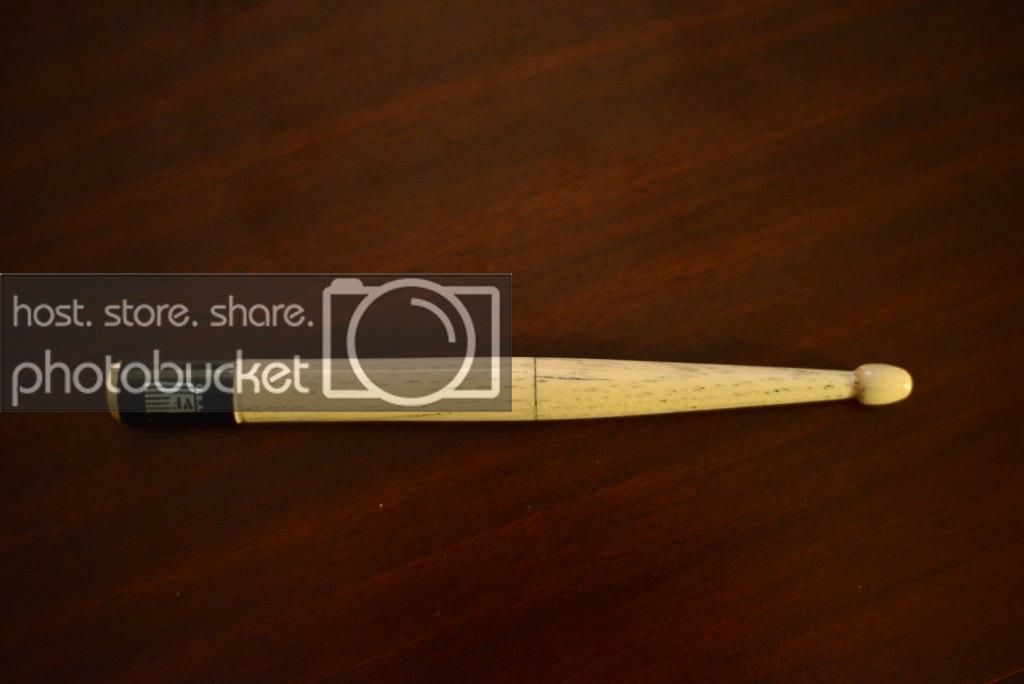 The hardware is PSI's Magnetic Graduate in Gunmetal. Drilling the bodies of these are really fun. You have to put a 10.5mm hole in the center of a 13.4mm drumstick. You end up with sidewalls that are about .064" thick.