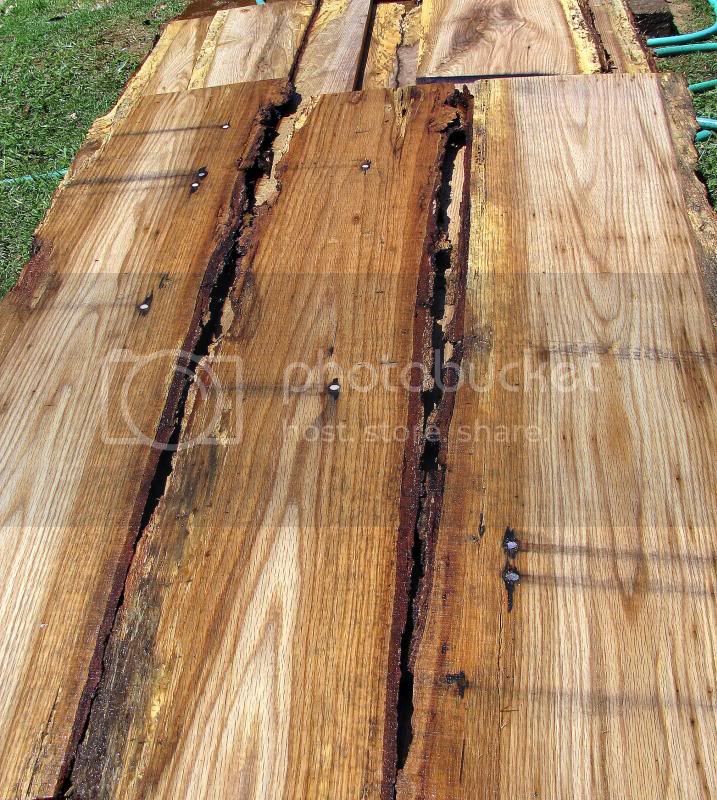 This past Tuesday, I happened to be washing up at the kitchen sink and looked out the window. Something just didn't seem the same.....called the wife over and asked her if someone had called her to drop off logs in the backyard. That's right, while I was at the 'real job', and someone came by and dropped off three(3) very large chunks of White Oak{Quercus alba}!!(Guestimator figured up 4,275-ish pounds)