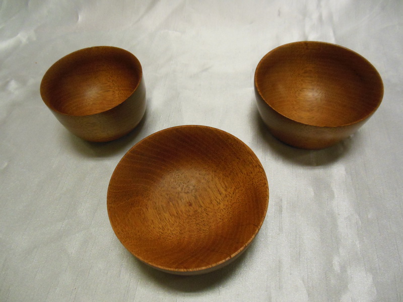 These are three small mahogany bowls I did for our Susquehanna Woodturners club demonstration. I was demonstrating how to use a CA finish on larger turned objects.