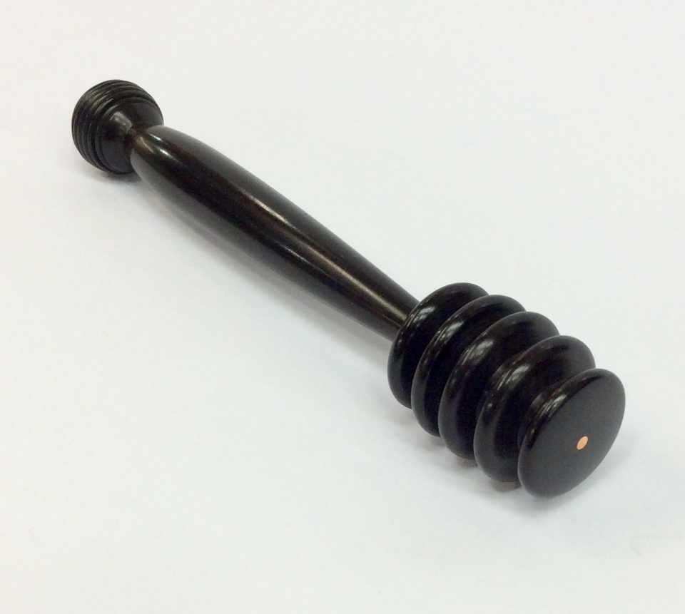 This is from African Blackwood with a copper dot in the end. I finished with one wipe coat of mineral oil and then when dry, Beall buffed.