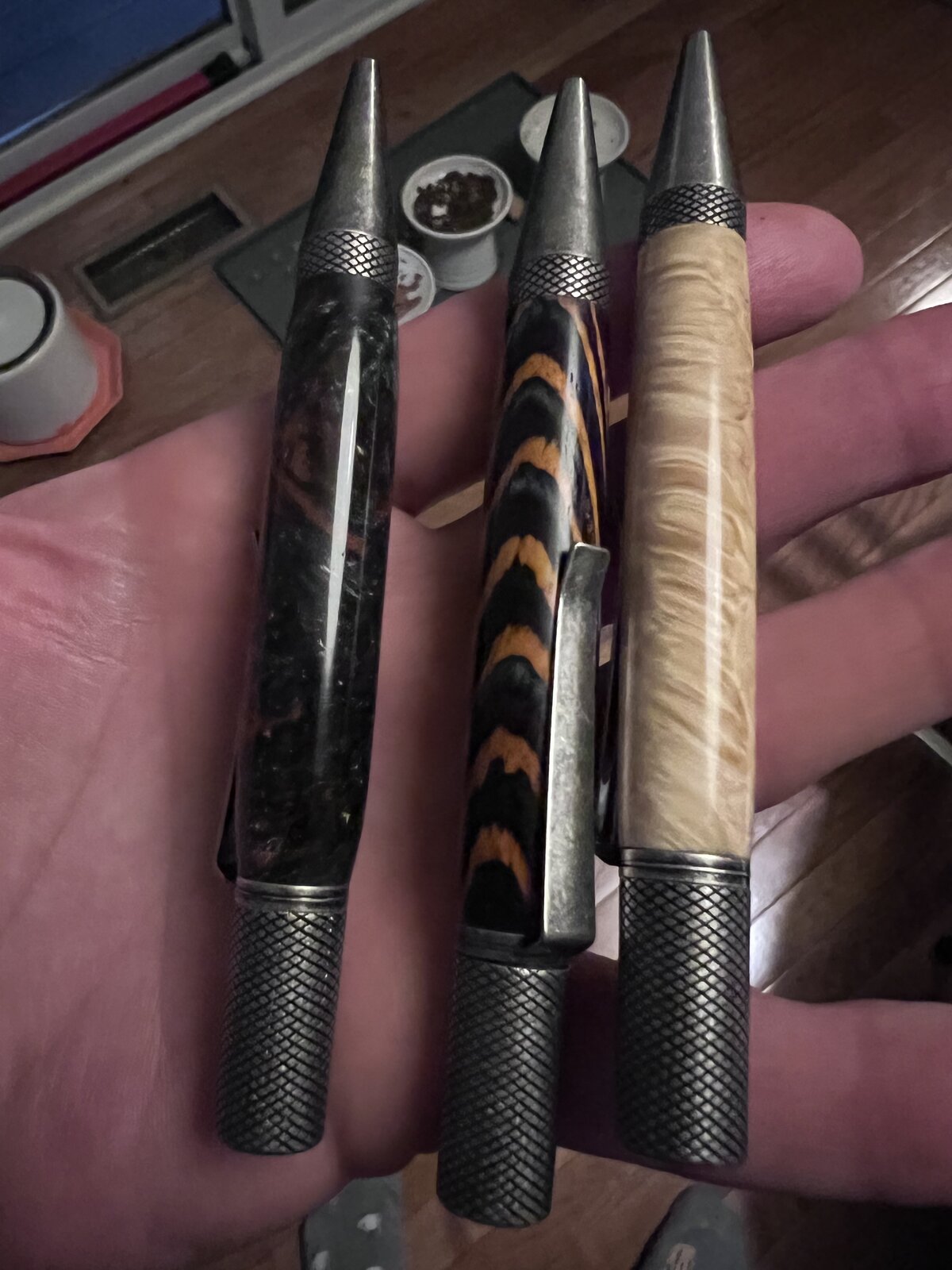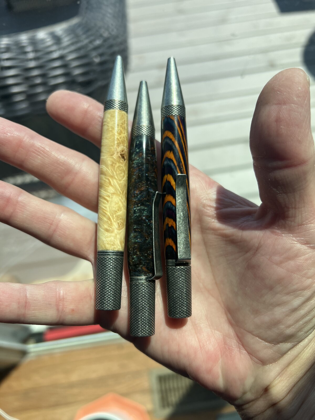 Nice pens, I like the Professor, very well balanced and show a lot of blank! Well done.Did a quick batch of Professor kits I picked up from Crooked Mill. It's a pretty fun, easy kit to turn