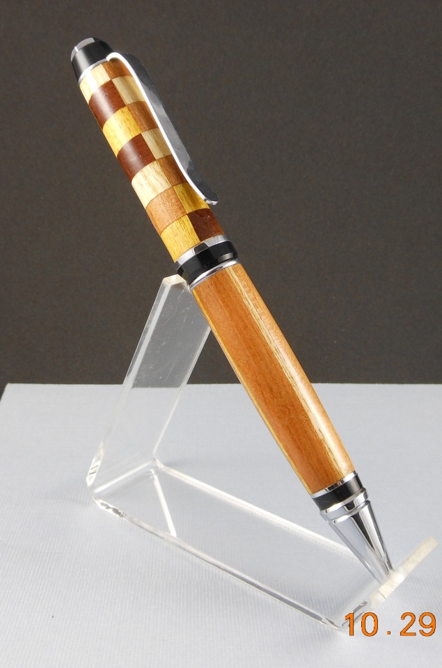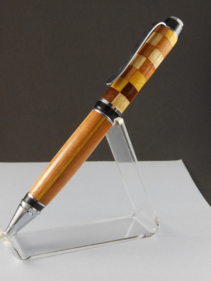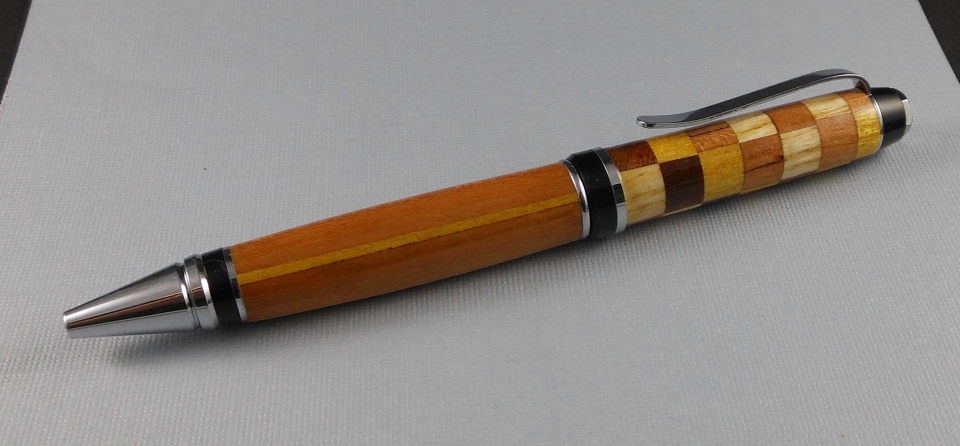 I thought I would do another segment. This one has 4 woods in the checkerboard style. Cherry Yellowheart, Ash and Walnut. 3 of those wood make up the lower barrel. More coming. Carl