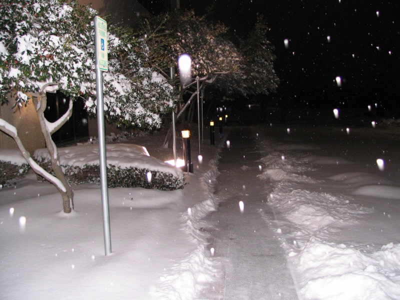 I've been gone from Texas a out 5 1/2 years now, but in '89 we had a nice little snow fall in Houston... took me nearly an hour to get from Humble through the airport to the other side where my office was... Only people who showed up for work that day lived in Humble, Montgomery, Conroe and the other outlying towns... the locals around the office all called in "snowed in"... my problem was, I was driving the son's car, not enough antifreeze in the engine and wound up blowing the radiator on the way home.:mad: