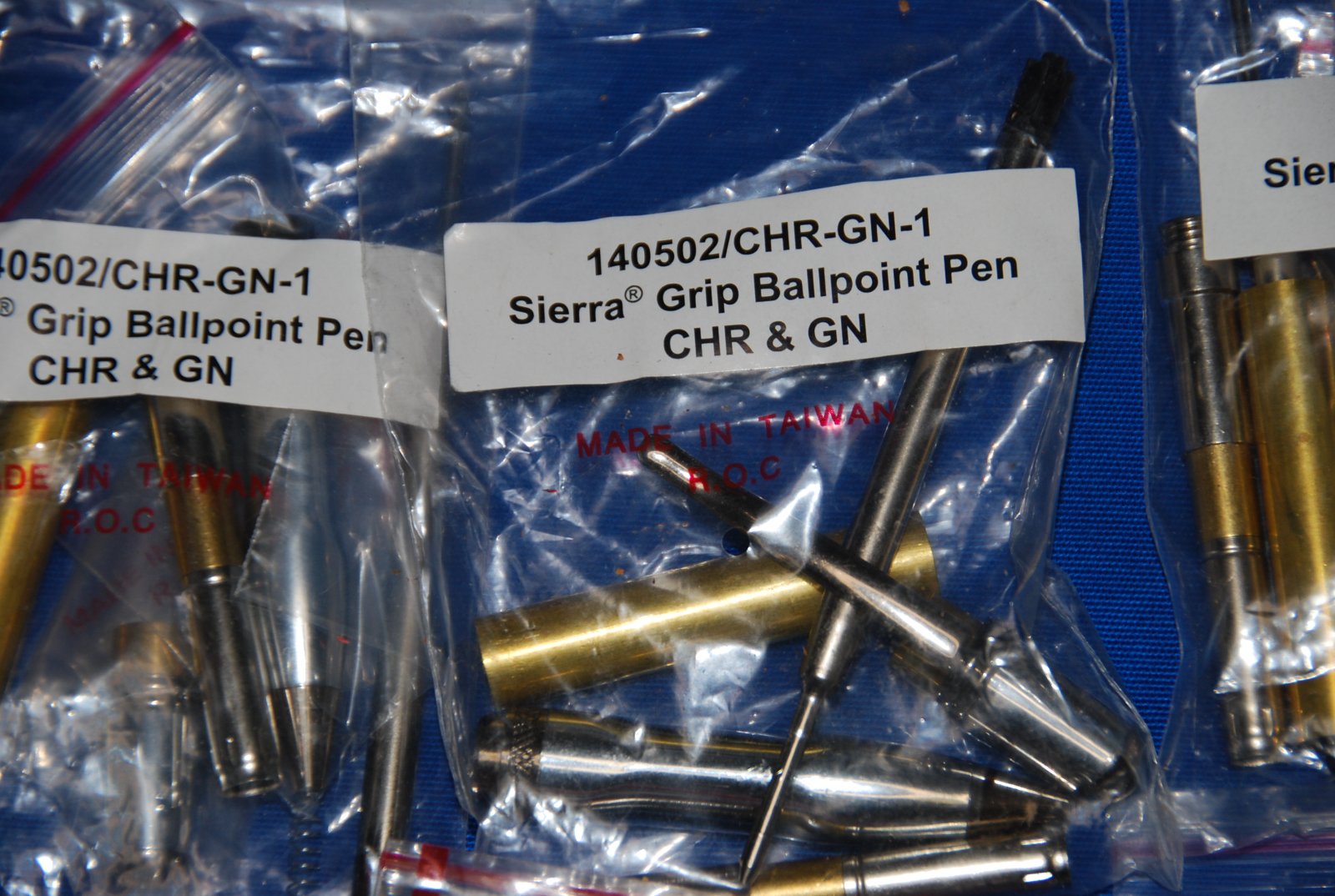 10 Sierra Grip pen kits with bushings. 5 CHR&GM, 3 CHR&HP, 2 GN&CHR. 90.00 +shipping within the USA. Paypal or USPS Money order.