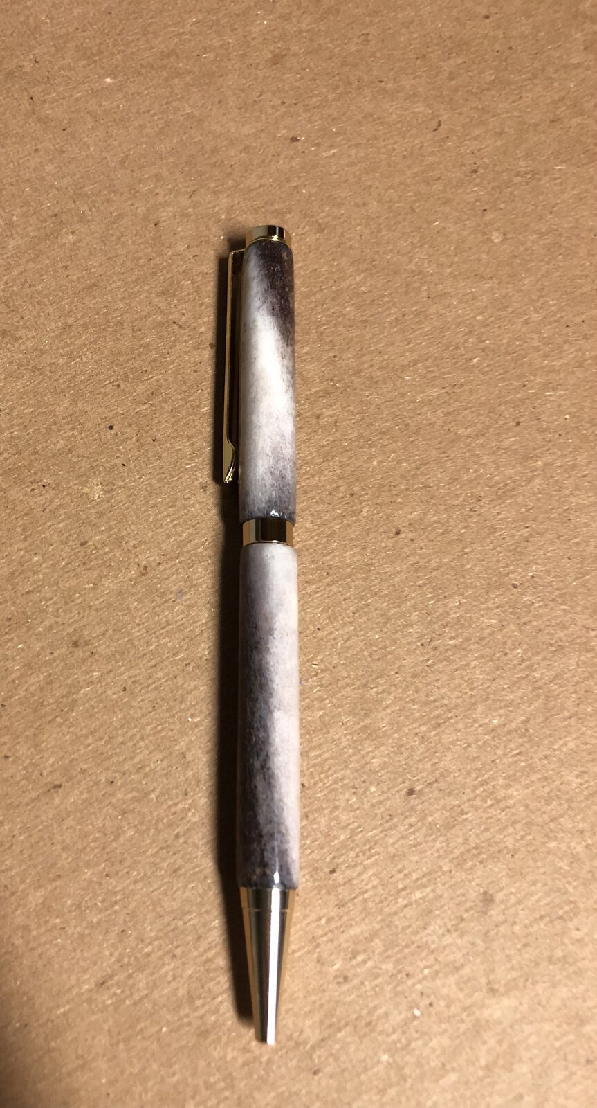 Figured that jumping into the deep end was worth a try so antler seemed like the right stuff for my 10th pen. Other than the fact that it's like working with granite, it was more forgiving than I expected. Shoutout to @southernclay for the pen kit.
