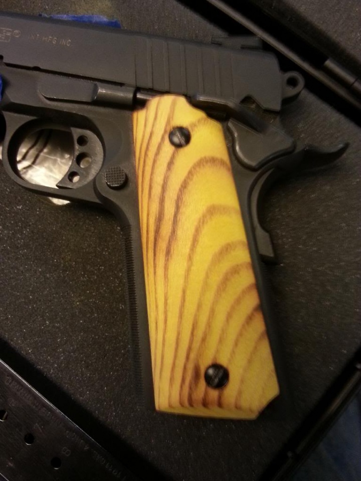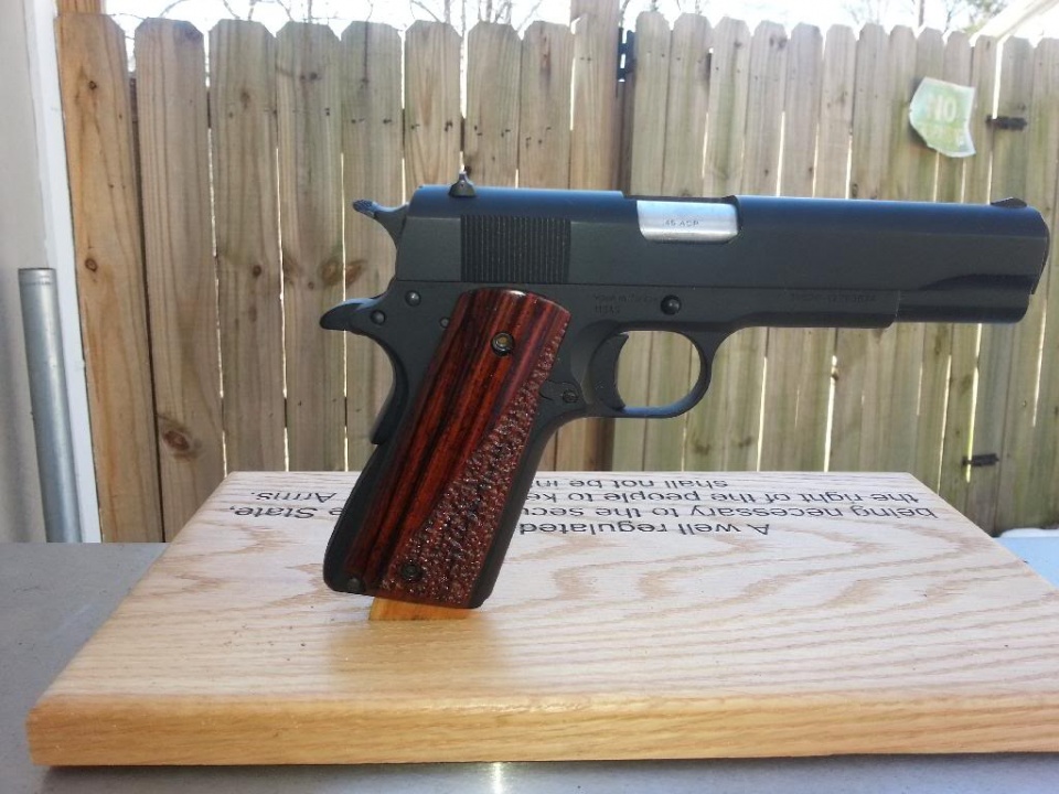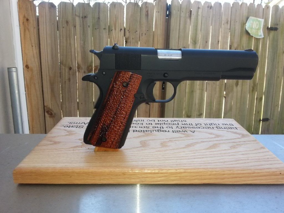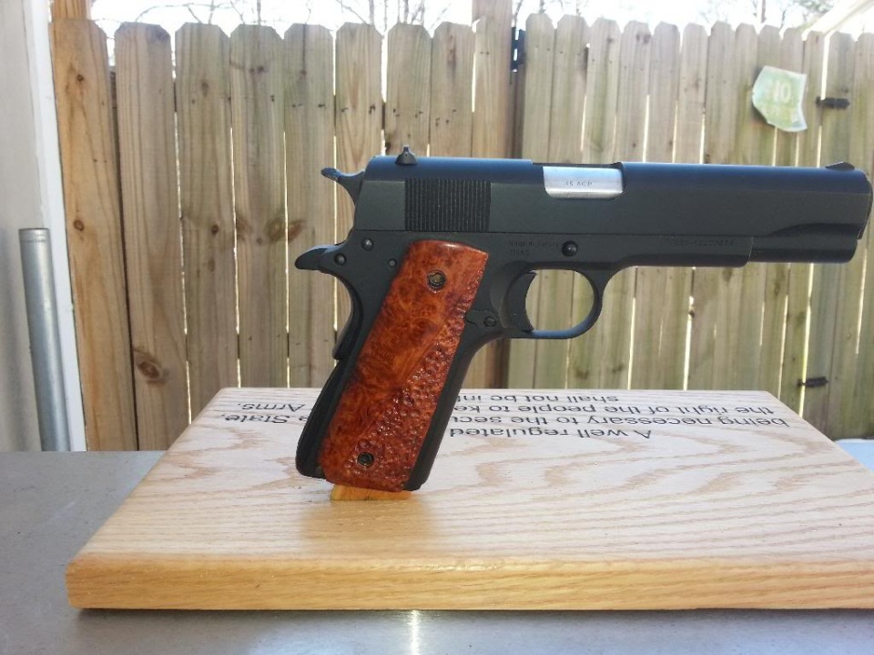 Ok, not what you are thinking. I don't have any made..... But I'm thinking about making a set or two for the two Rock Island 22TCMs (1911 base) that I own. One has a very thin set of grips that are a cheap rubberized plastic. Don't know if I can use a filled wood. Anyone have some that they have made in the past and can post pics? You can go to 22TCM.net Index page to see some of the models I'm talking about.