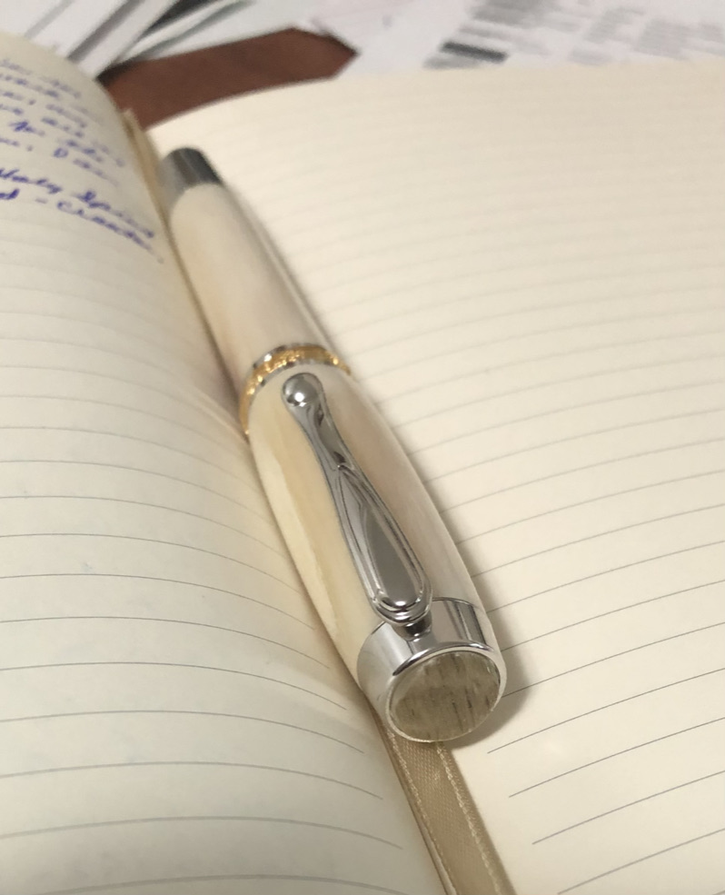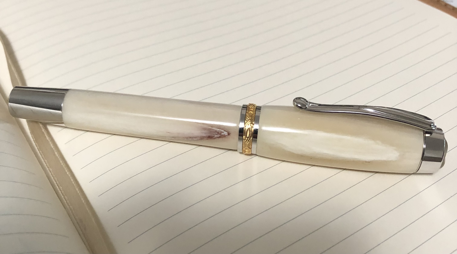My first Dall Sheep Horn Pen. Put on a full size Statesman RB. Made a custom Cabochon to show off the bark of the horn. Son picked up the horn on a Dall Sheep hunt in Alaska. Finished with CA to seal and shine! C&C welcome!