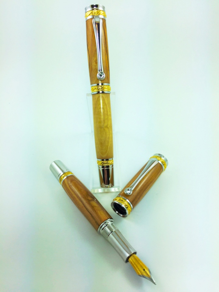I did my first two fountain pens today. 22K Gold and Rhodium Majestic on Bethlehem Olive Wood. I was extremely nervous as could be before I did the first one but jumped in and did it. I really, really like these.