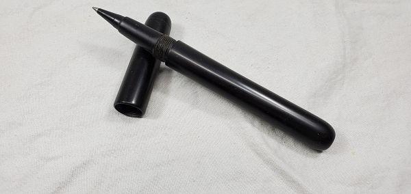 While nothing to write home about, it is my first attempt at kitless pens. Many mistakes made, much learned. Basic black ebonite with a Schmidt Rollig Writer nib. Clip donated from a kit. finished with Dr, Kirks polish. Thanks for looking.