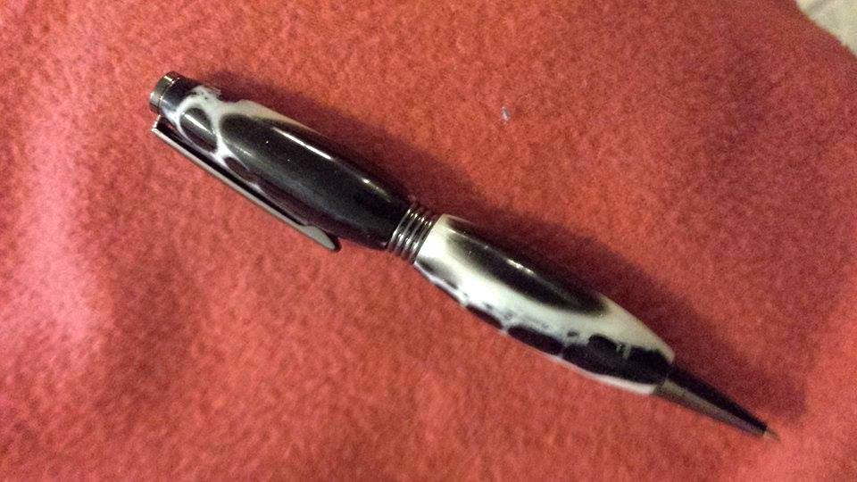 That is a very nice blank you have there. You may want to take your blanks down just a bit more in your future pens. I know it is a bit disconcerting when you are starting out to get them too small but the bushings really can be a good guide. I don't like this style taken down too far though. Just a little bit more off and I think you would really have something here. This is a good effort though..