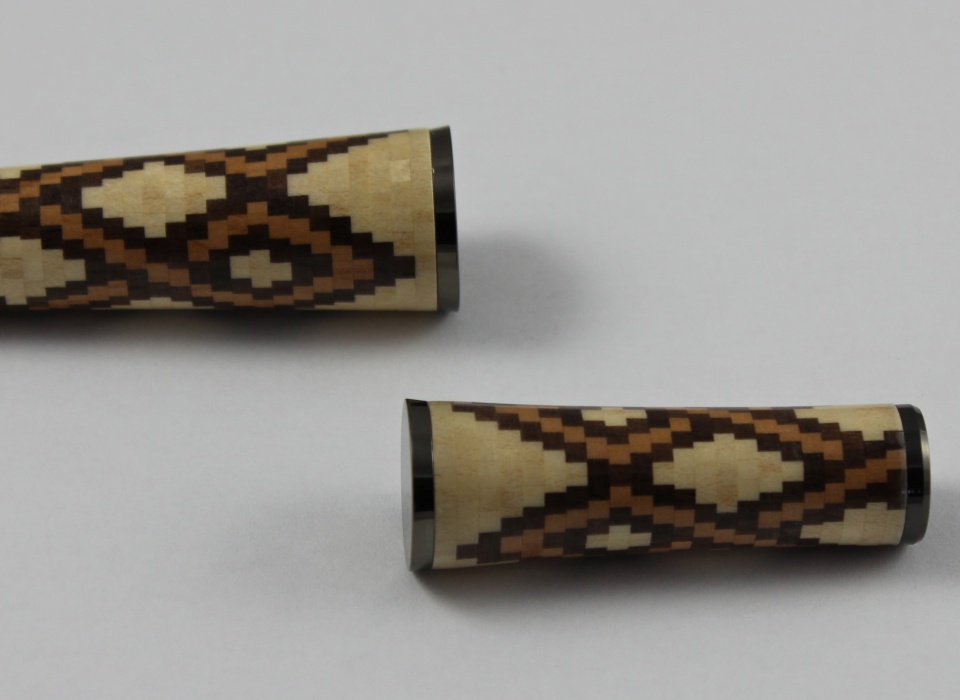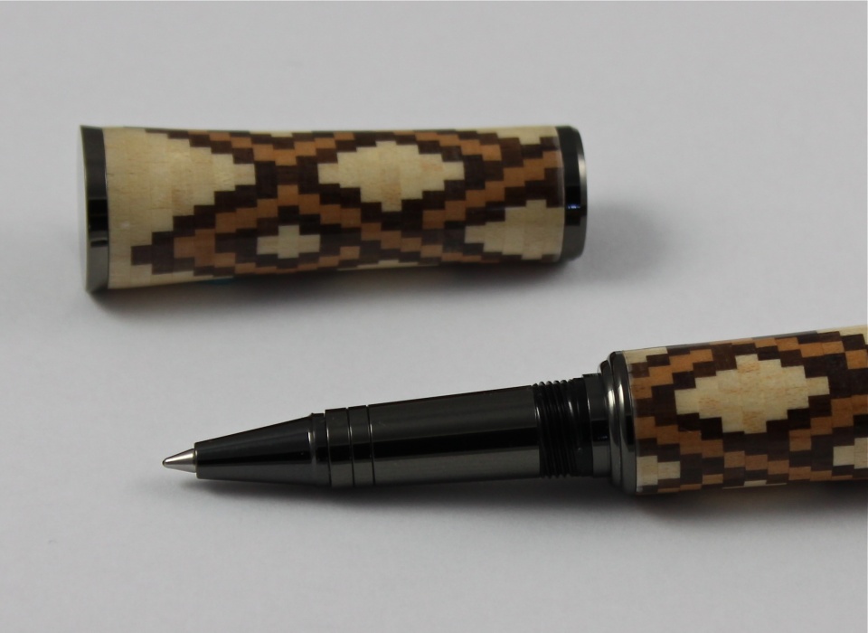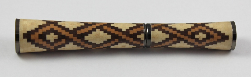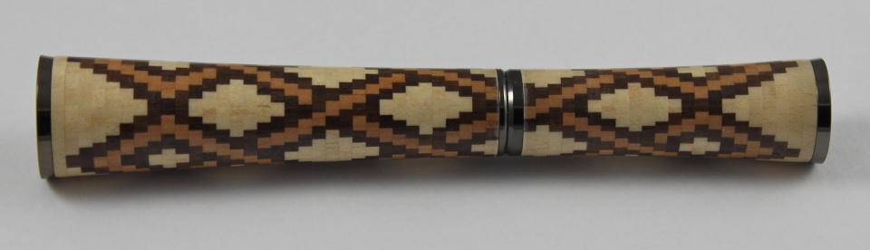 There are a total of 55 rings, with 21 pieces in each ring. Each ring is about .060" thick. For a total of 1,155 pieces of cherry, maple, and walnut. I used a CA finish on it.