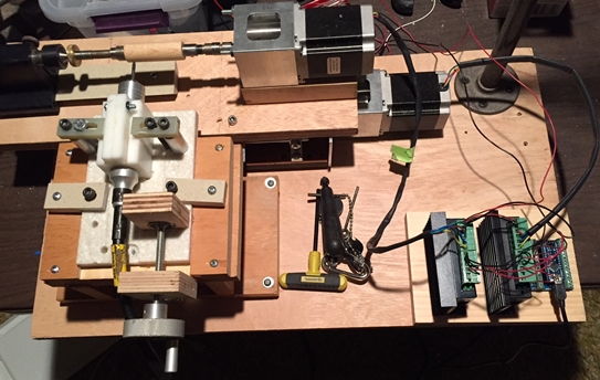 Jim did a demo of this for our Penturners club and was scheduled for a repeat at the Richmond Woodturners club meeting in July. His vacation is interfering with that so I threw together some spare parts and came up with a version a little different but functionally the same to fill in for him. These run on an Arduino with free software. All you need is some simple GCode commands and these machines can do anything a Beall Pen Wizard does and more for a fraction of the cost.