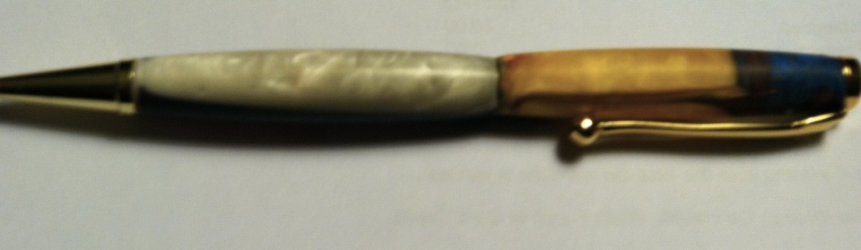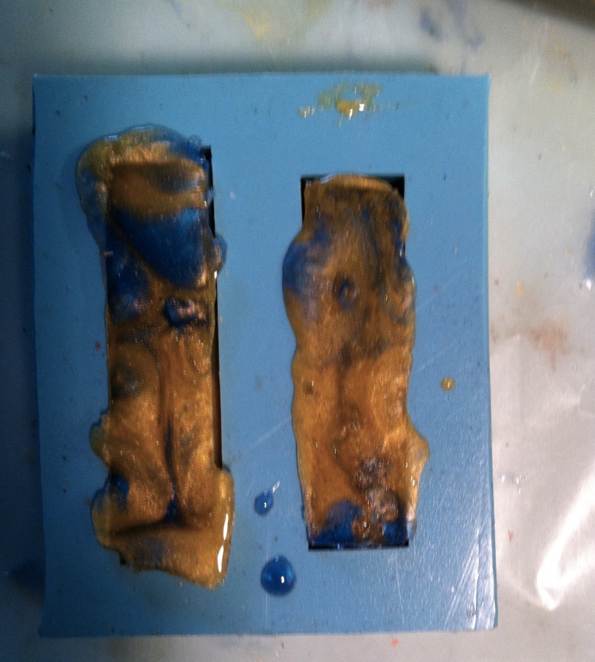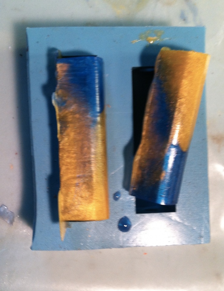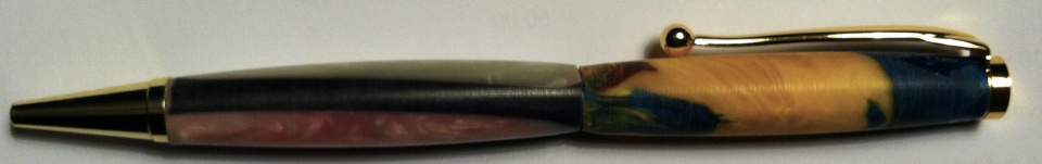 I did the segmenting with some pink, blue and white acrylic I had left over. The top was done with the tube in mold. I poured the blue and yellow in separtaly just like you would for a PVC mold.