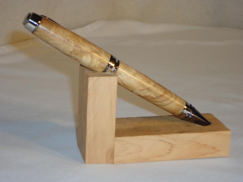 Nice work !! I would take a half round router bit and round over the edges of your pen holders. It will give them a sleaker and more polished look. Also sand and finish them. You are not only showing off your pen, but your craftsmanship as well. Welcome to the fold !! Jim S