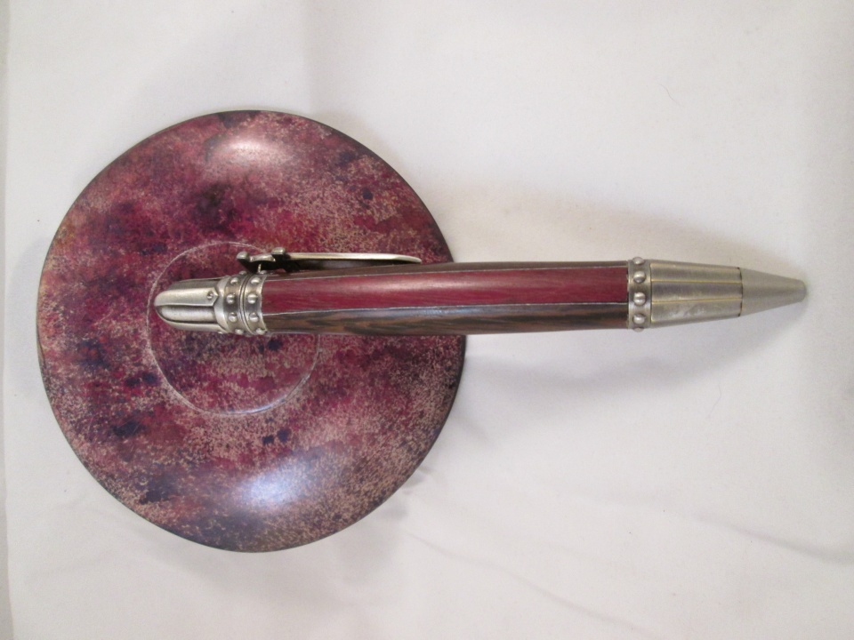 Very nice. I too like the purple heart with the pewter finish hardware.