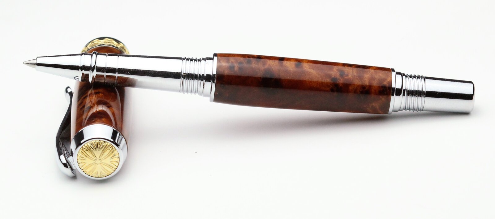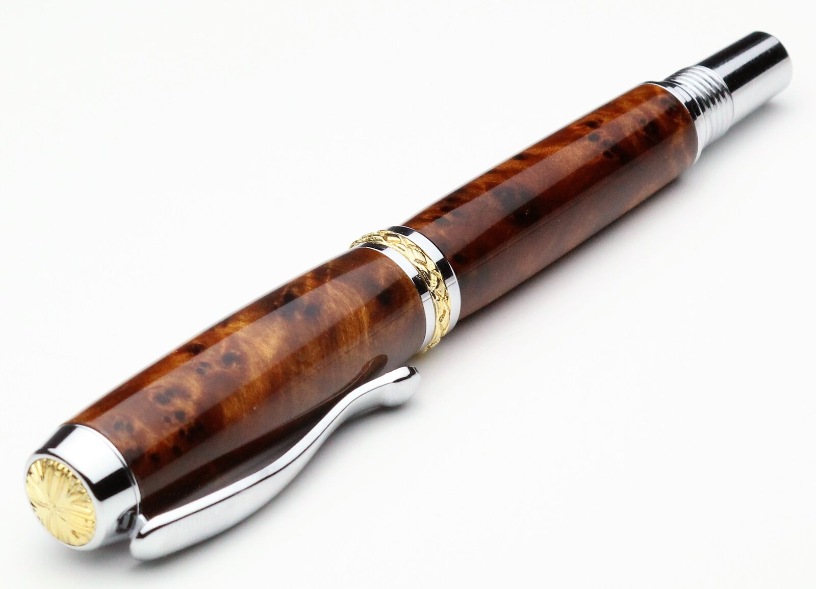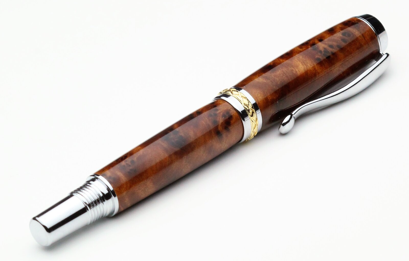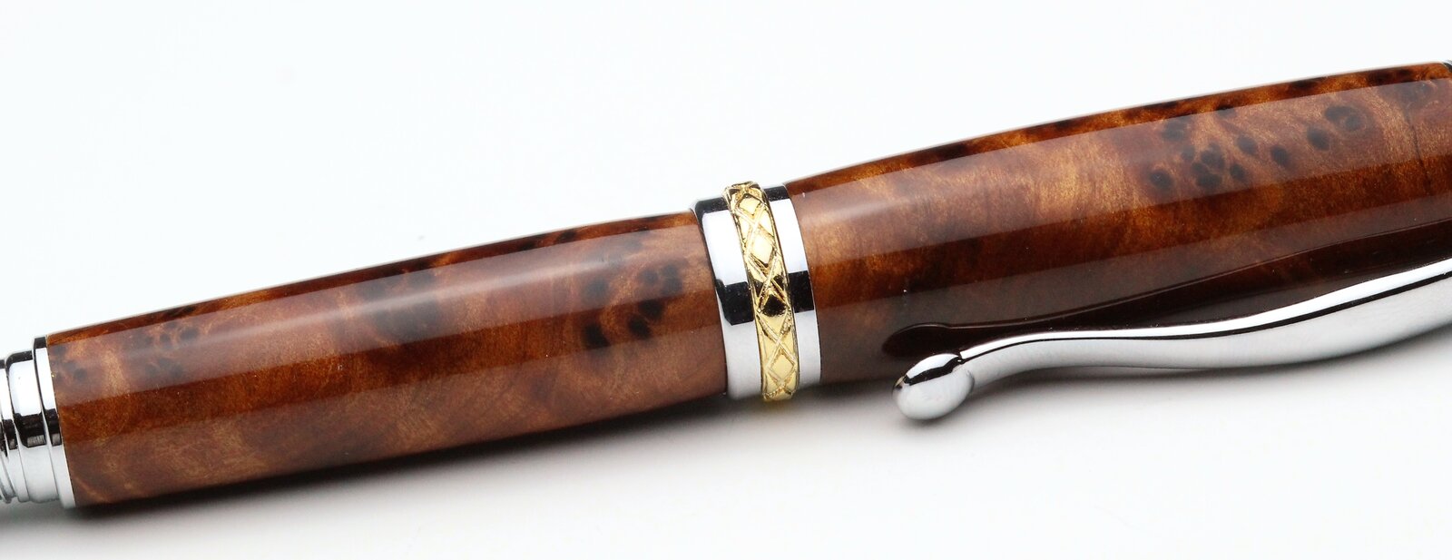 Amboyna and Thuya burls on a Tycoon and Triton, with CA finish. First pen from Thuya for me, I found it to be a quite waxy wood.