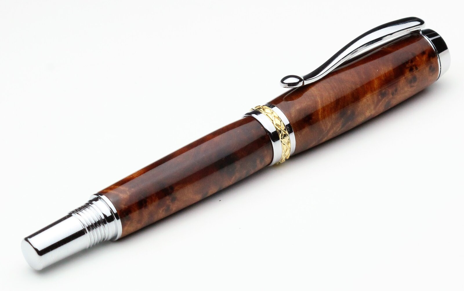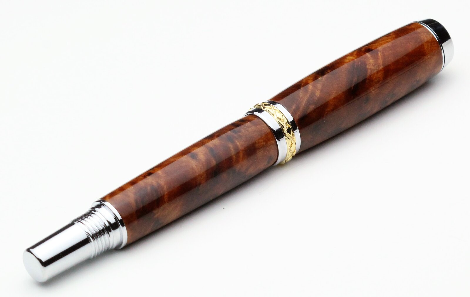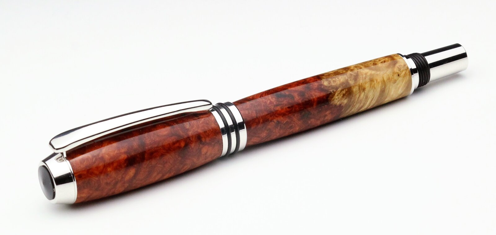 Amboyna and Thuya burls on a Tycoon and Triton, with CA finish. First pen from Thuya for me, I found it to be a quite waxy wood.