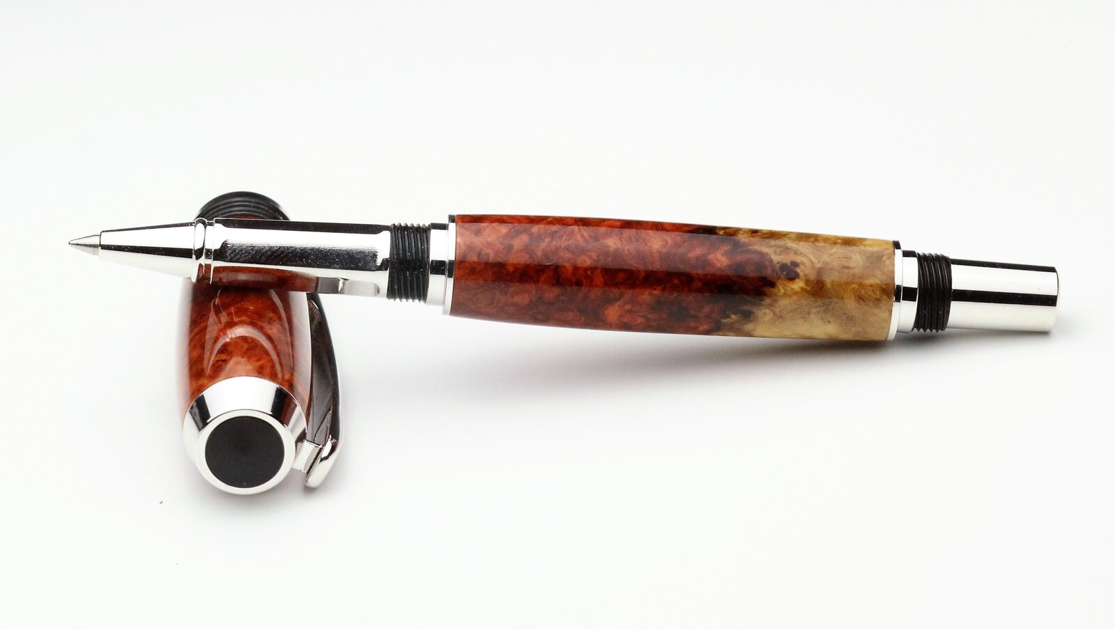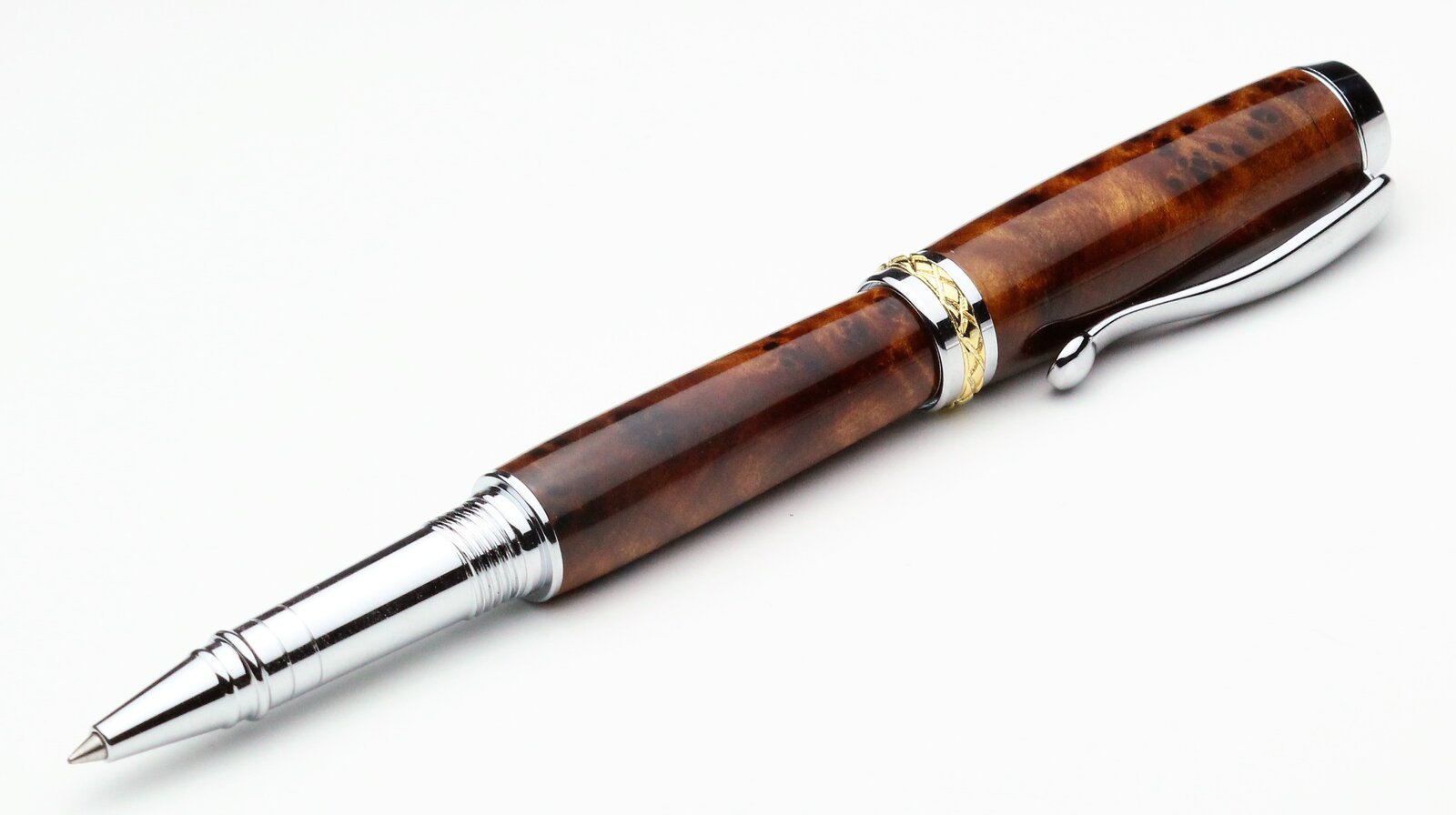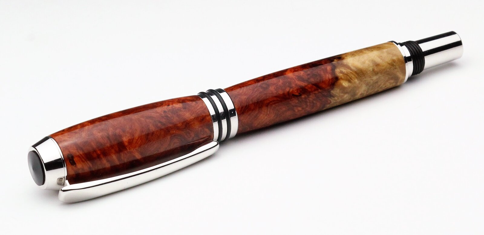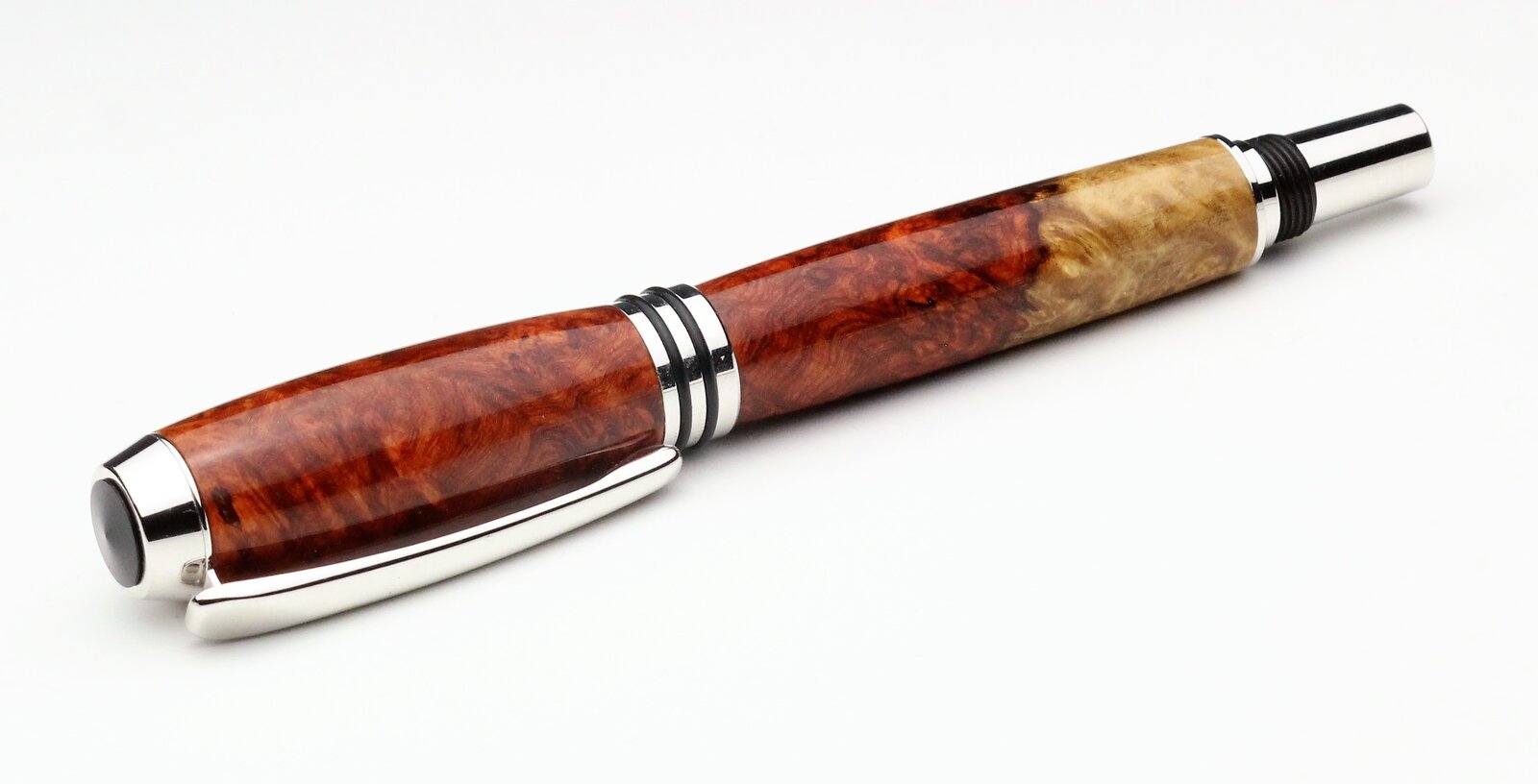 Amboyna and Thuya burls on a Tycoon and Triton, with CA finish. First pen from Thuya for me, I found it to be a quite waxy wood.