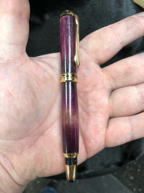I'm happy with how the Purpleheart turned out once I applied the torch trick. (Only problem is that I couldn't get a CA finish to work after I heated the wood so I went with a traditional polish instead.). I'm assuming it is due to the Purpleheart oils being drawn out by the heat of the torch.