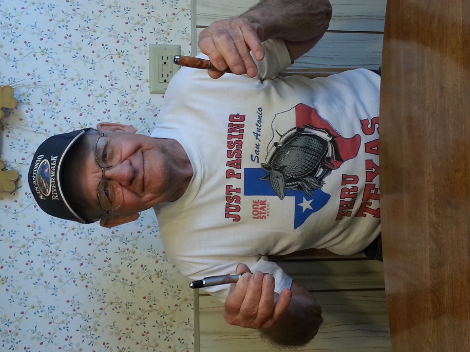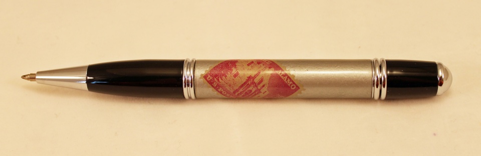 A few weeks ago I posted asking for suggestions for a San Antonio-themed pen to make for my Dad for his 84th birthday. I took my parents to San Antonio a few years ago and my Dad absolutely fell in love with the city. He hadn't flown since serving in the Army during the Korean war, and the trip was a big thrill for him. We've since gone back again because he loves San Antonio so much. With the incredible generosity of Gordon (flyitfast) and Mark (Mark s), I was able to make him two unique pens. The Jr Gent is made from mesquite and pecan wood from trees in San Antonio and the stamp pen features an Alamo stamp. Both pens are far from perfect. It seems the more important a pen is to me, the more problems I have with it. However, both pens were made with love and I think my Dad will enjoy them. Comments are welcome. I'm already very well aware of the mistakes I made.