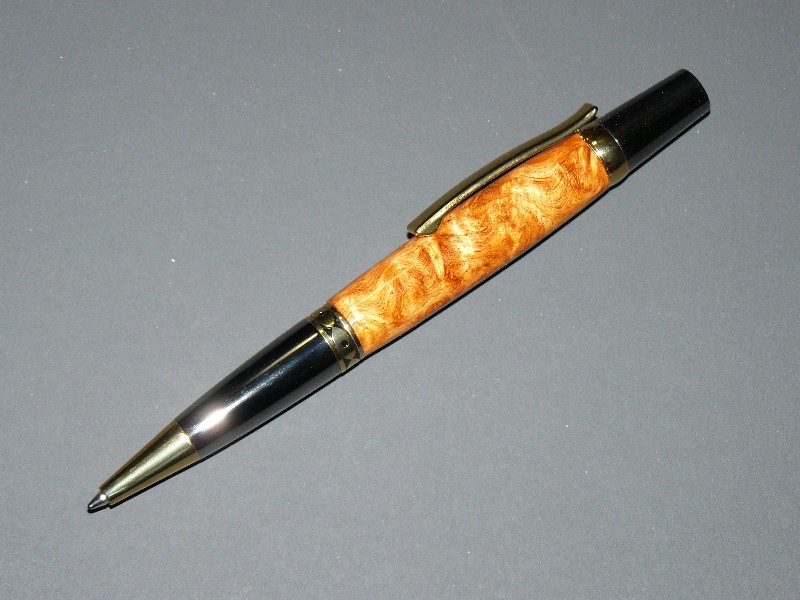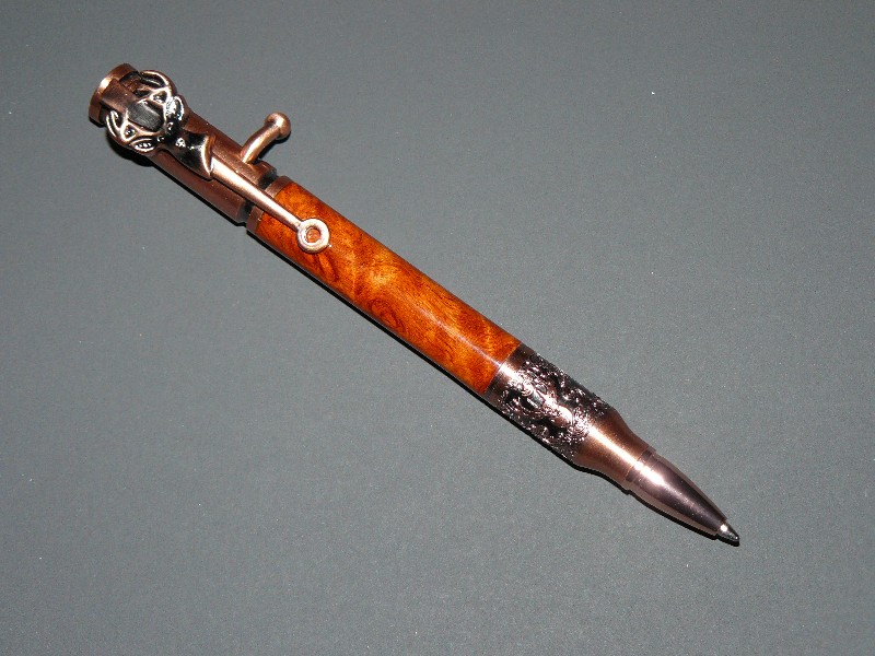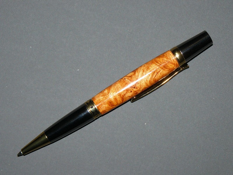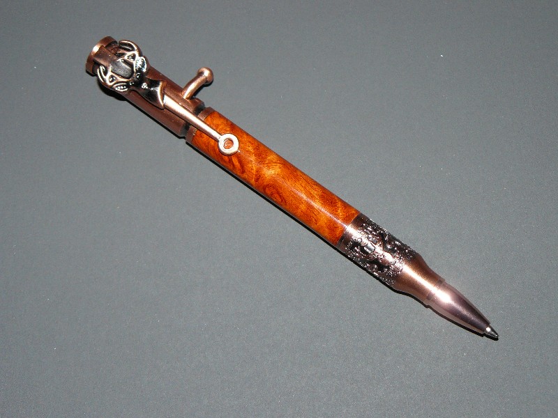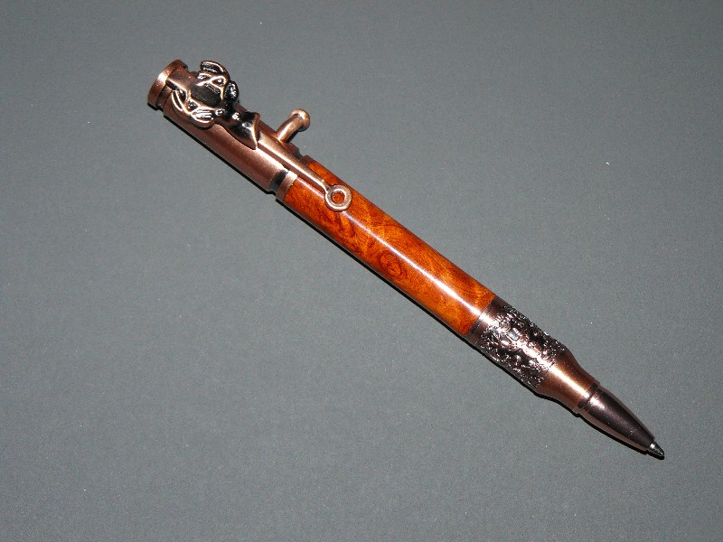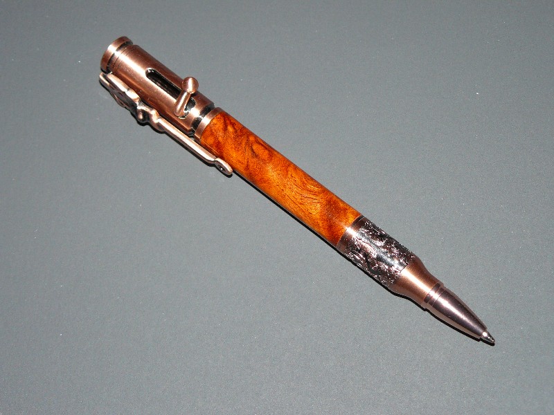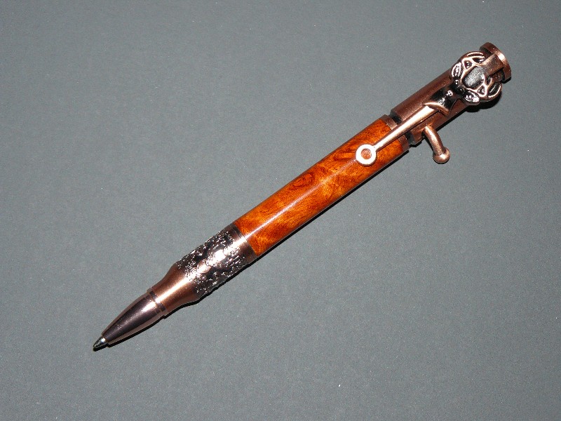 Here are a couple I did this past weekend. The first is a Deer Hunter Bolt Action from Exotic Blanks in Amboyna Burl. And the second is an Ellipse from Exotic Blanks in an Amboyna Burl also. Hope you like. All comments and critiques are most welcome. Except on photography. I know it stinks.