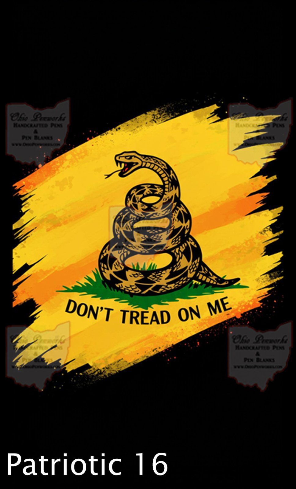 Transform your pen turning project with this striking Alumilite Acrylic Pen Blank showcasing the iconic Gadsden Flag design on a sleek black background. Craft a unique and patriotic pen that stands out from the rest. Perfect for adding a touch of American history to your writing experience. This