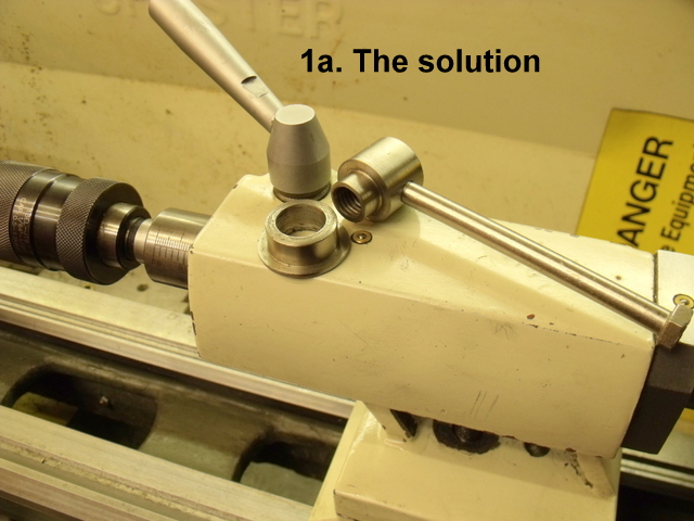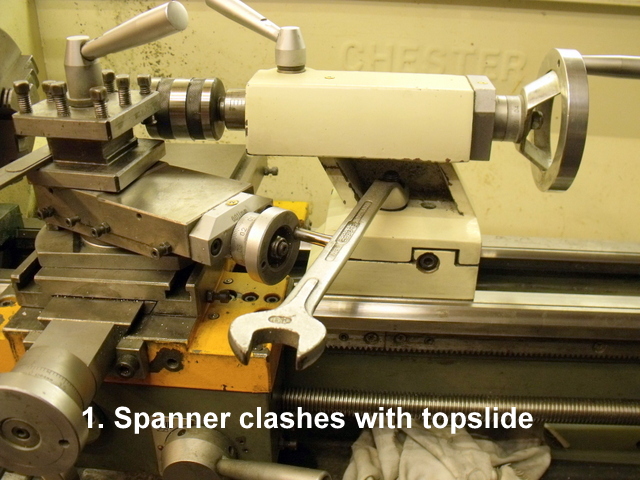 The pics show my solution to a common problem with a metal lathe tailstock. The clamping spanner often clashes with the carriage or topslide.