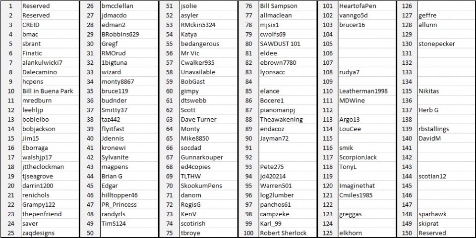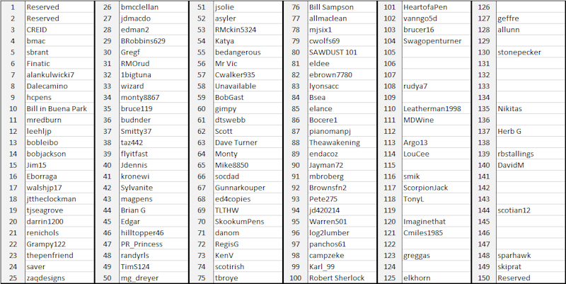 jeff Administrator Staff member Joined Dec 5, 2003 Messages 9,070 Location Westlake, OH, USA. Jan 16, 2017 #161 Here is the latest list: LAST CALL! Reservations close Wednesday Jan 18. Orders after that will be filled randomly. Attachments reservations-2017.jpg 218.8 KB · Views: 409