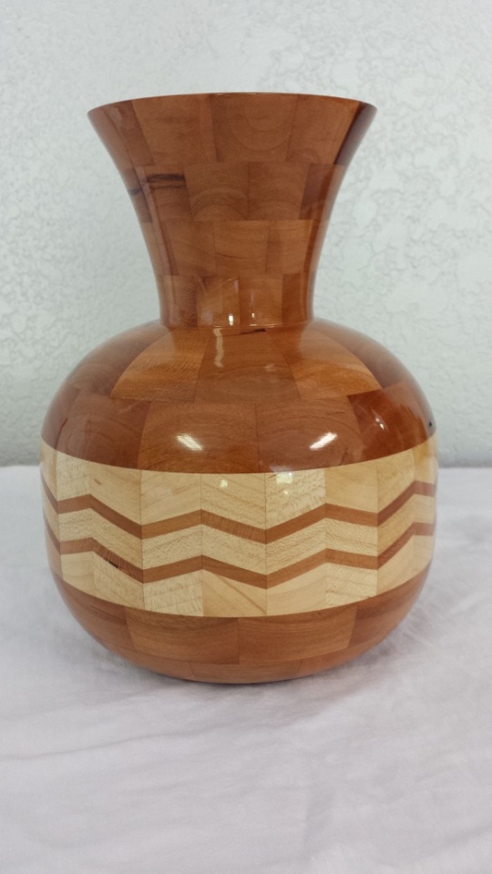 P preacherman Member Joined Jun 12, 2013 Messages 264 Location Crossville, TN 38572 Sep 14, 2015 #1 This is my latest effort from the lathe that is not a pen. Been working on it for a little bit. It has 217 pieces of cherry and maple. It is 6 inches in diameter and 7.5 inches tall. Finish is wipe on poly.