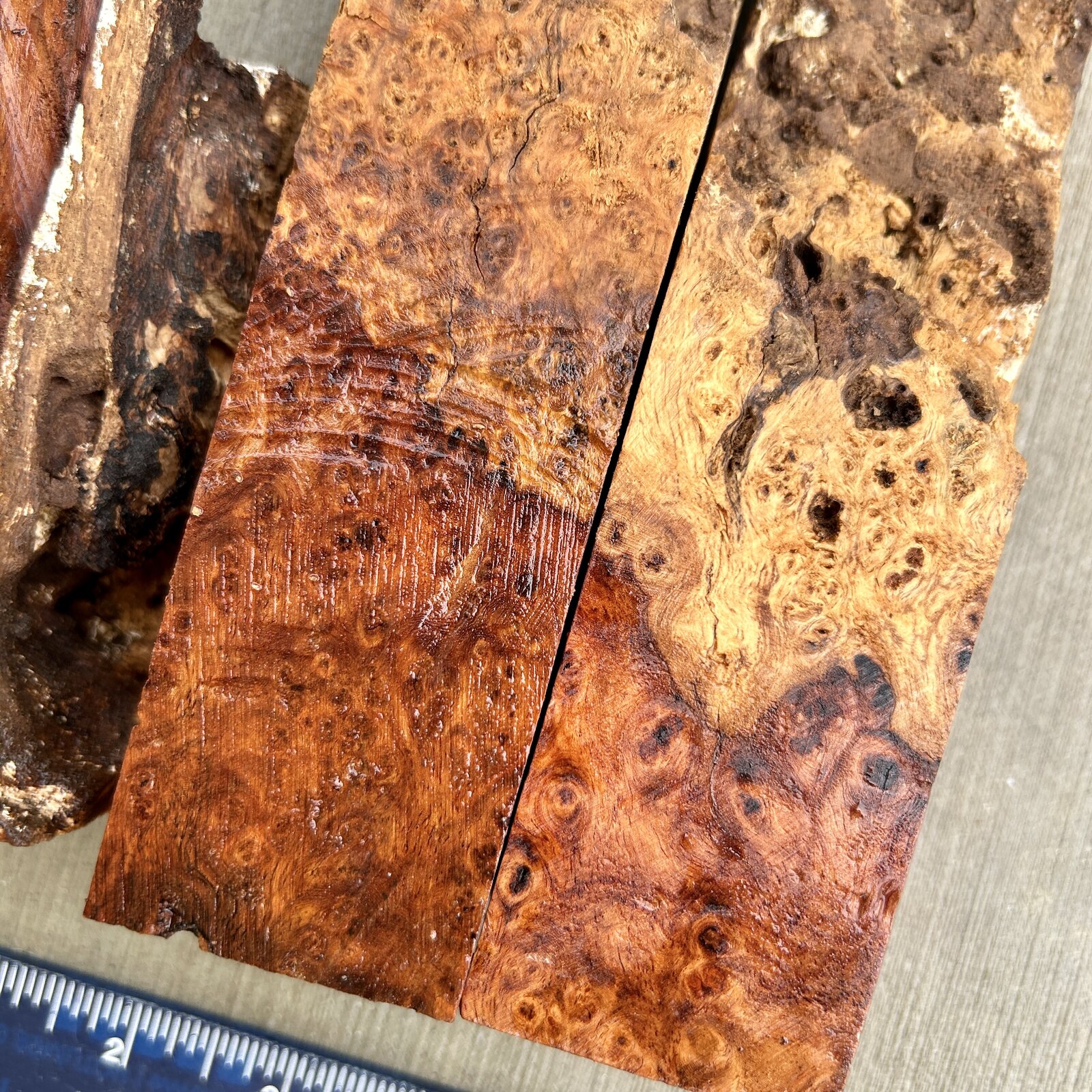 >>3 Figured Amboyna Burl Wood Blocks (Lot B7) Turning Block / Pen Blanks / Knife Scales / Turning Pen Blank / Cutlery Handles
