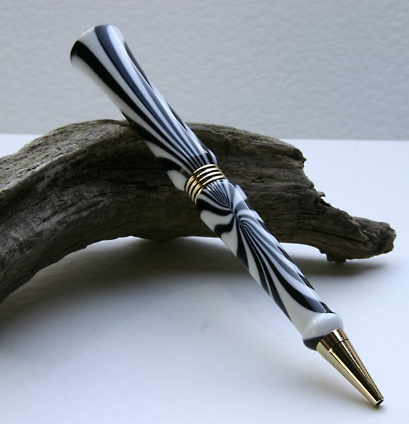 really getting to like making these closed end acrylic pens but takes me a while to think of new shape for each one this means a lot of time leaning on lathe thinking.