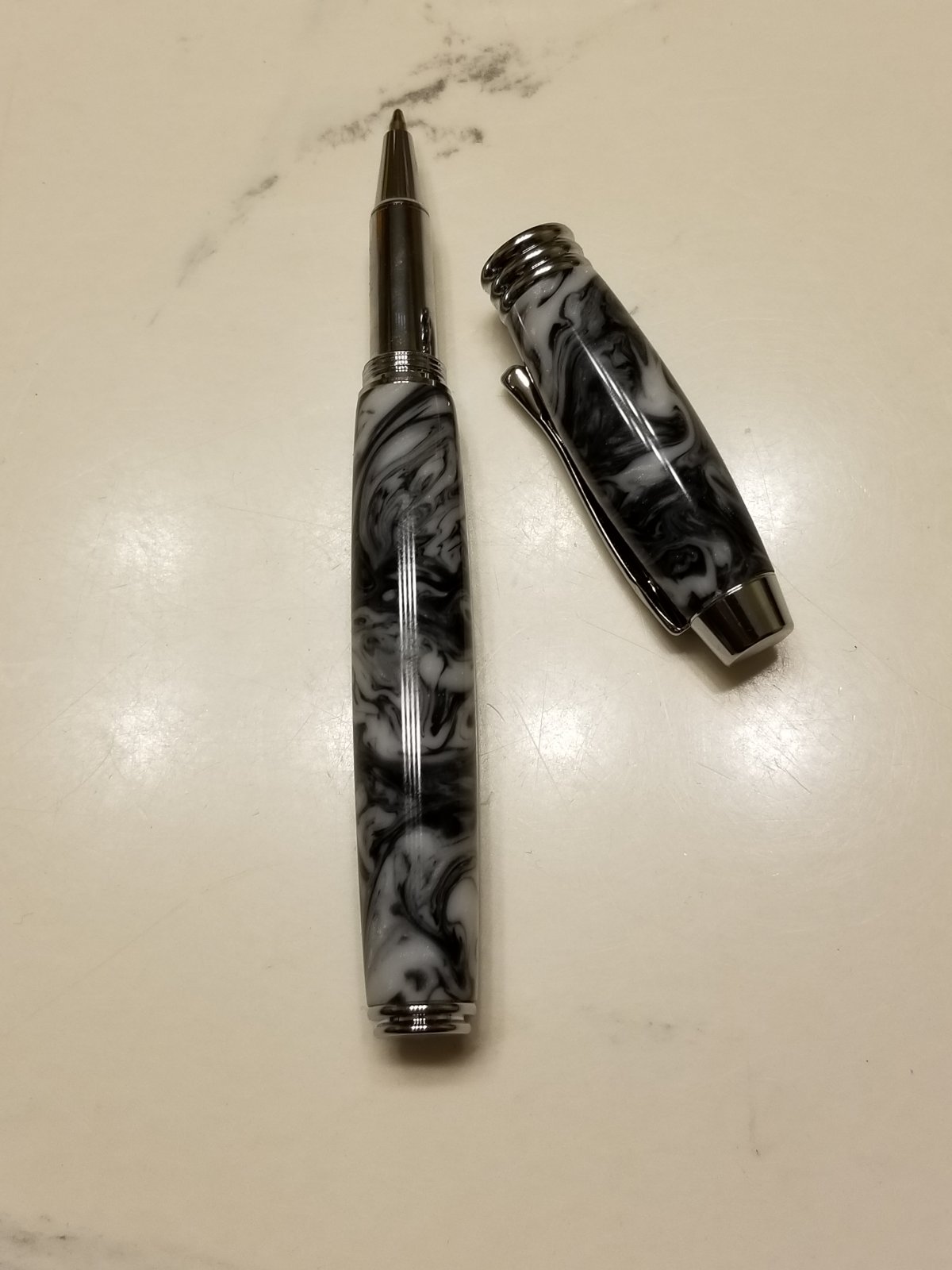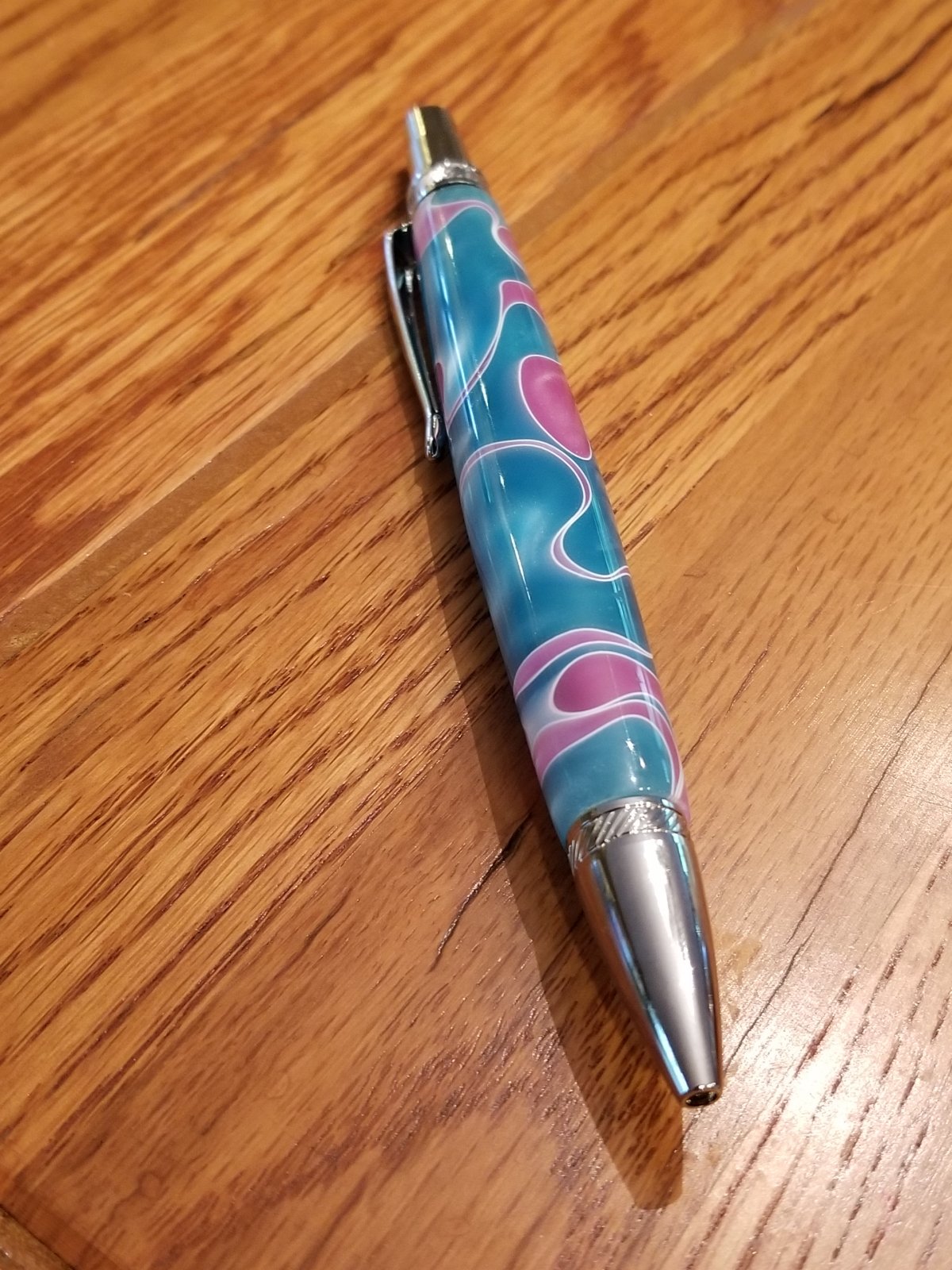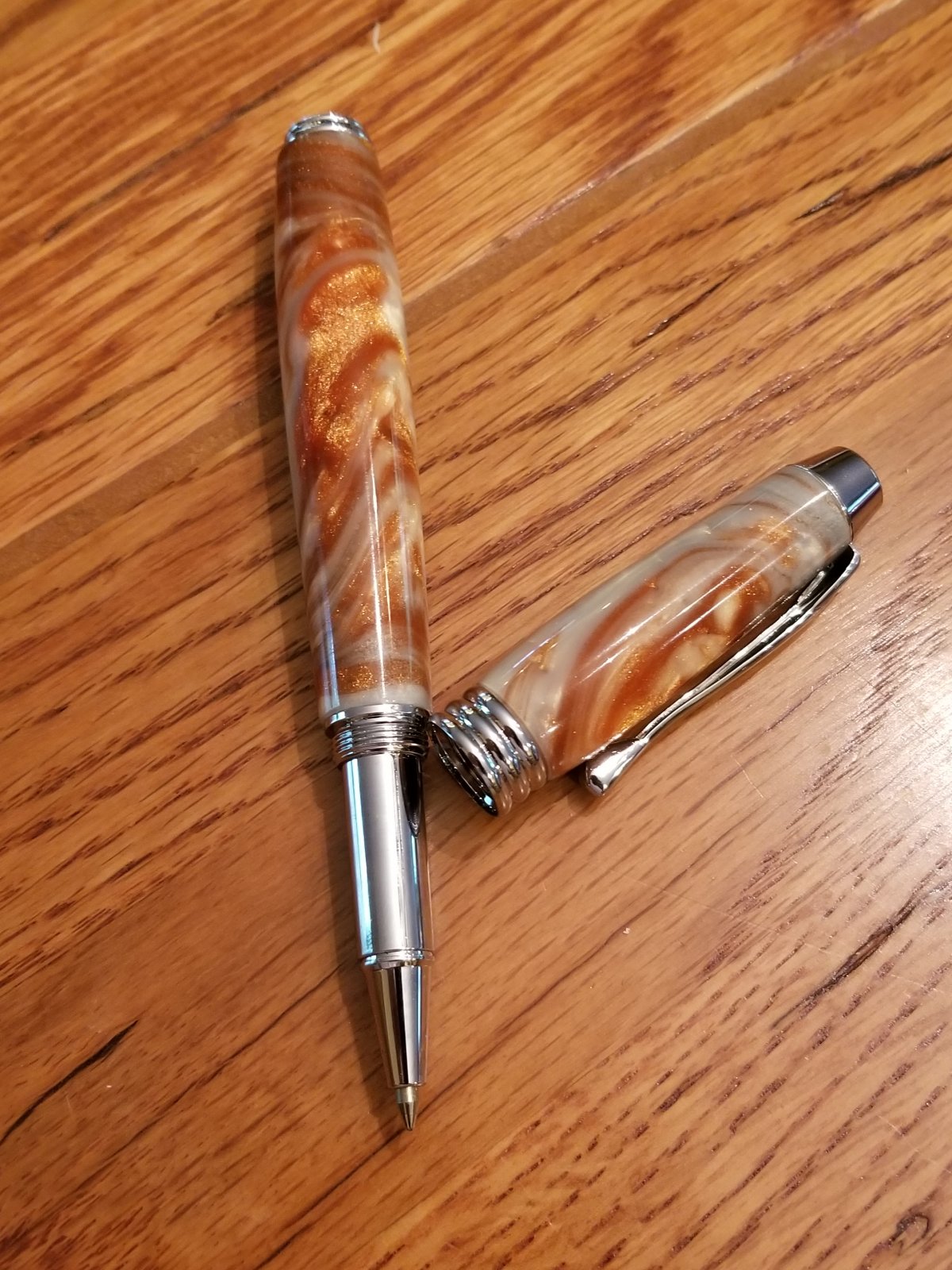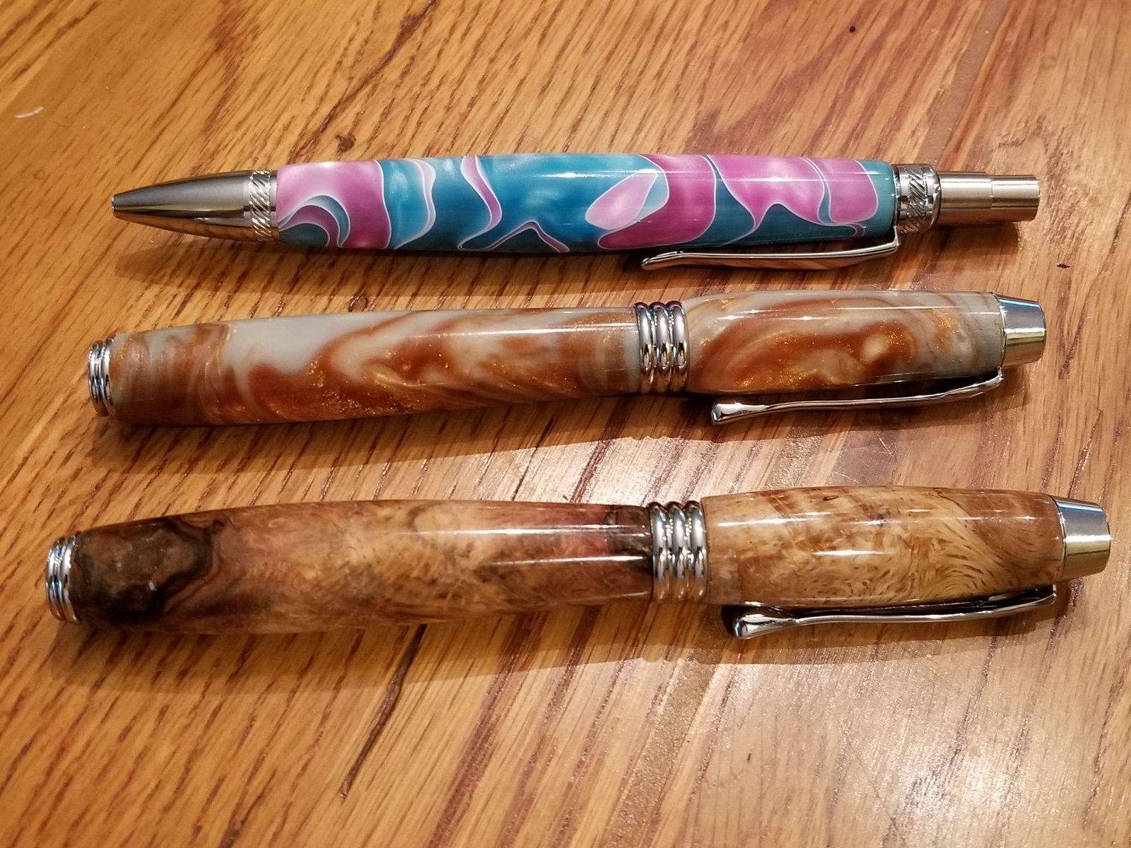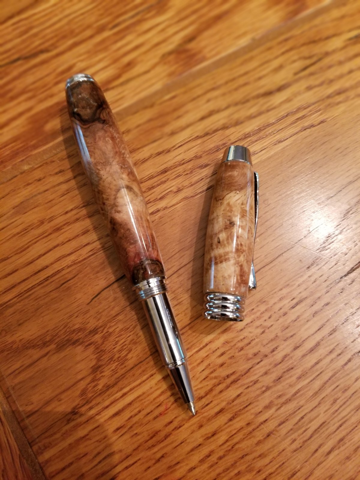 Berea Blade clicker and two Manager Rollerballs. One of these is more of the oak burl from my property. I like this kit but I wish it were postable.