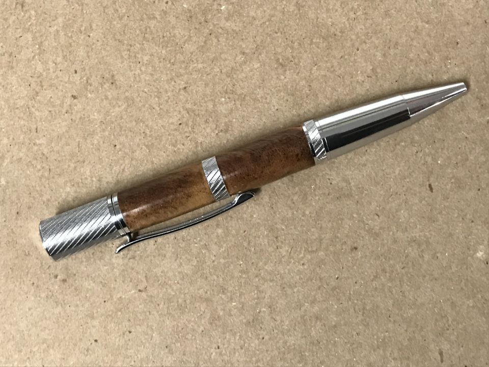 The Pensar is a new kit to me. It is from Woodcraft. I used canary wood cut at a 30 degree angle. It's rather striking in its own way.