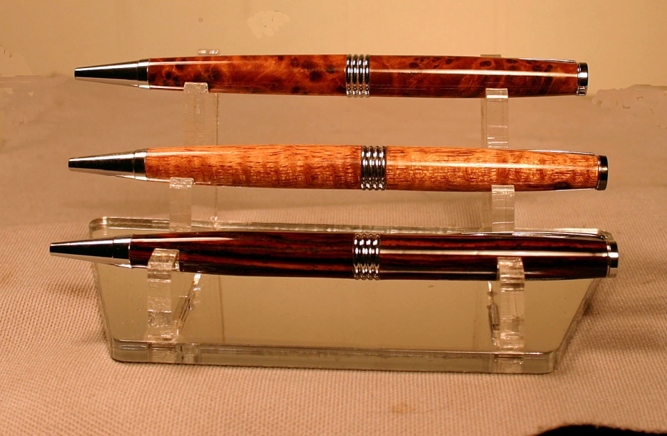 These 3 are freshly made for a consignment shop. Bottom is Camitillo or Kingwood, middle is from a pallet of foreign parts and the top is Thuya burl