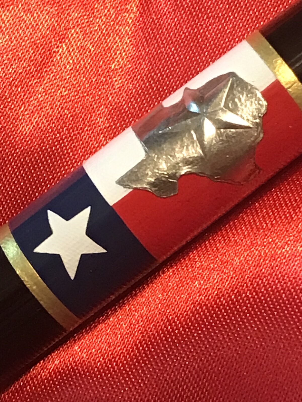 One think about being a little slow is that your always open to learn more. At least in my case. I like playing with the vinyl machine and figured out how to do a few things that makes a cleaner image and much easier to do so. The flag is all vinyl on black cloth. Since the tube is on the small side the whole quarter looked award so I cut the state and star out. I used the gold trim to imitate the gold fringe that's sometimes around the flags in buildings. Questions and Comments Welcome.