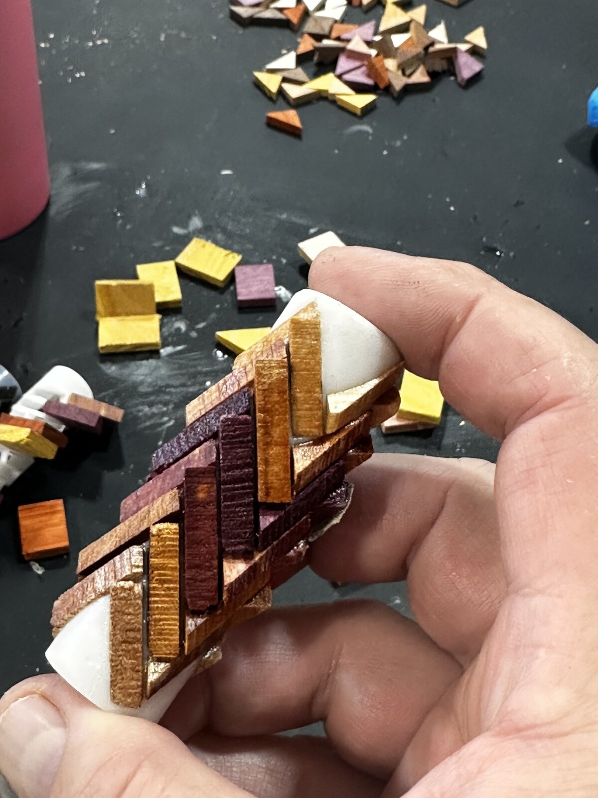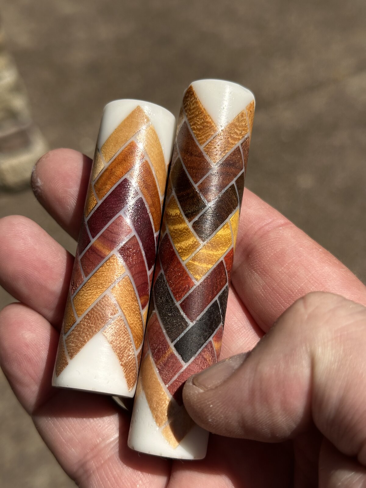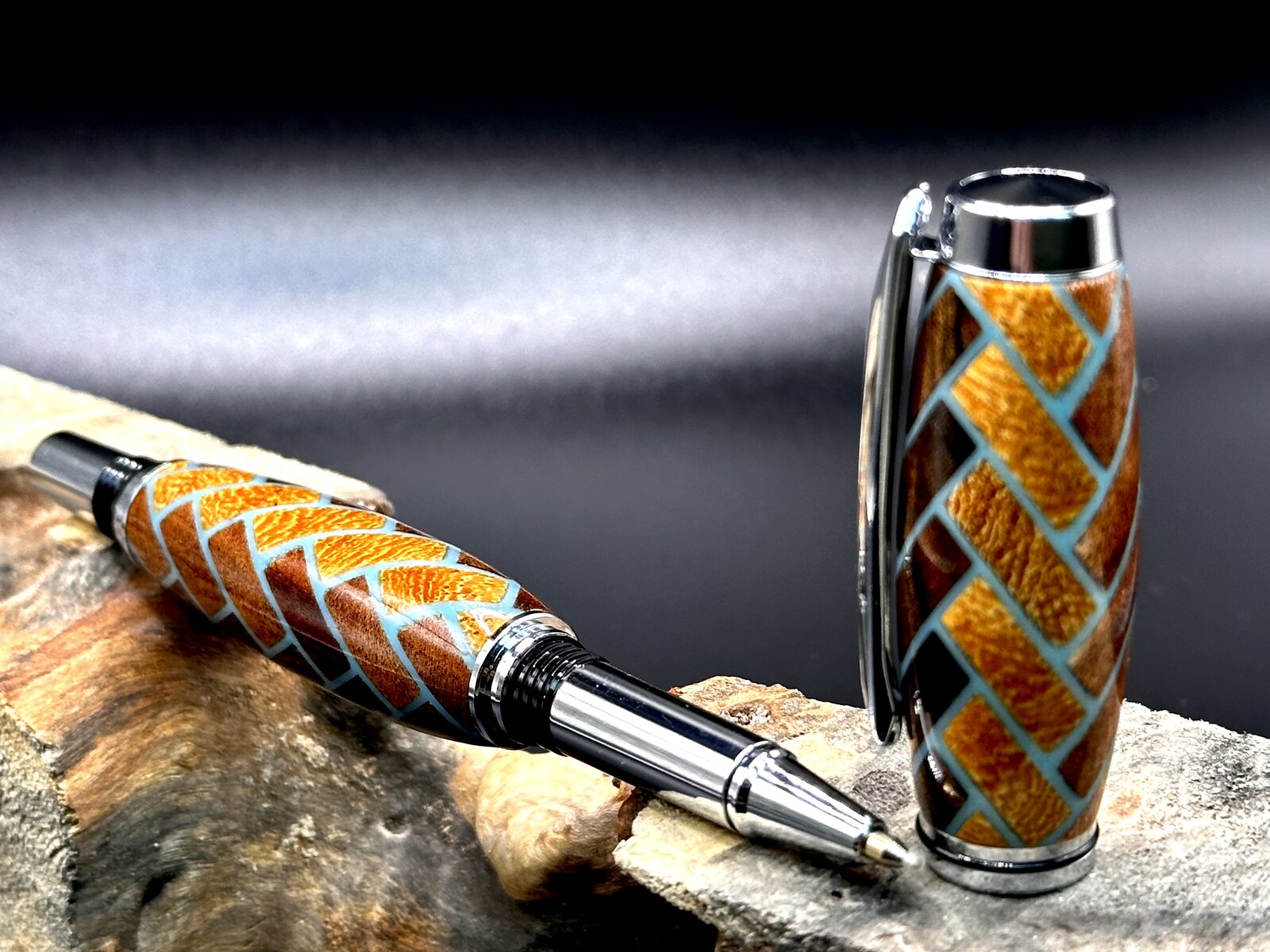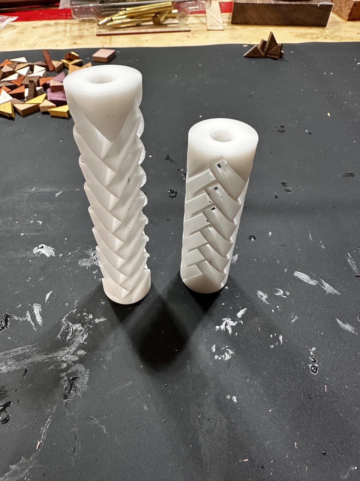 I love herringbone pens, specially the 360 ones, but not necessarily the process of making them, so I designed a method to make them using a 3D printed core (what I call a skeleton) in which I add the wood segments. Aside of making the process much simpler (without considering the design of the skeleton) the waste is significantly smaller. Let me know what you think!