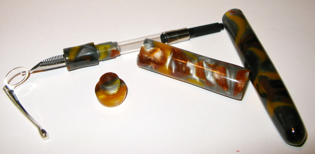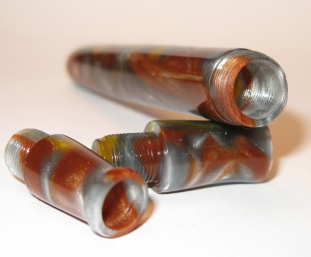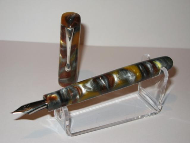 Lots of disasters between my last pen and this one, including one that I ran out of matching blanks for. This one took multiple tries to get it right. My main problem was keeping the workpiece true and centered. Turns out I was moving things around in the collet too much. Lesson learned! I've included a pic of the tragedies -- 2 section attempts, one barrel attempt, all off-center. Comments welcome, as always!