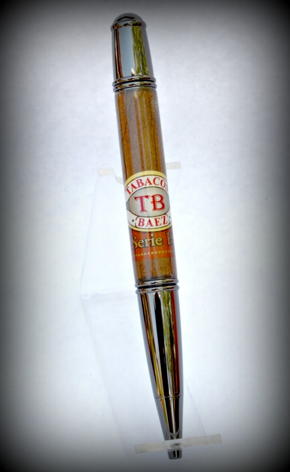 I don't know if you've tried this or maybe this is what you did. When I cast stamps or something that doesn't take up the whole tube I would take a piece of wood, the same kind of wood that would be on the bottom half of the pen, and make a copy of it on a color copy machine. The only thing I had to guess at was how dark to make the copy because when you finish wood it darkens as well. Sometimes it was hard to match the two. The other was the seam. The darker the better the copy because you can use a pencil or marker to hide the white edge of the seam when you cut the paper to fit. Take the marker and drag the side of the tip along the edge of the paper. There is also the grain matching at the seam but I just put it under the clip and lived with the rest. I've unwrapped a few cigars in the last few weeks and I can tell you the leaf is wrapped like the stripes on an old barber pole. I don't know how old you are they are in a spiral like threads on a screw. Ha Ha. I would try to copy the tobacco leaf and try to get one with a lot of stems through out and darken it up a few notches. Like I mentioned earlier color the edges with a marker and glue it on the tube the same way it was wrapped around the cigar. That way you don't have to worry about straight line seams. The pen above looks great to by the way. Good Luck.