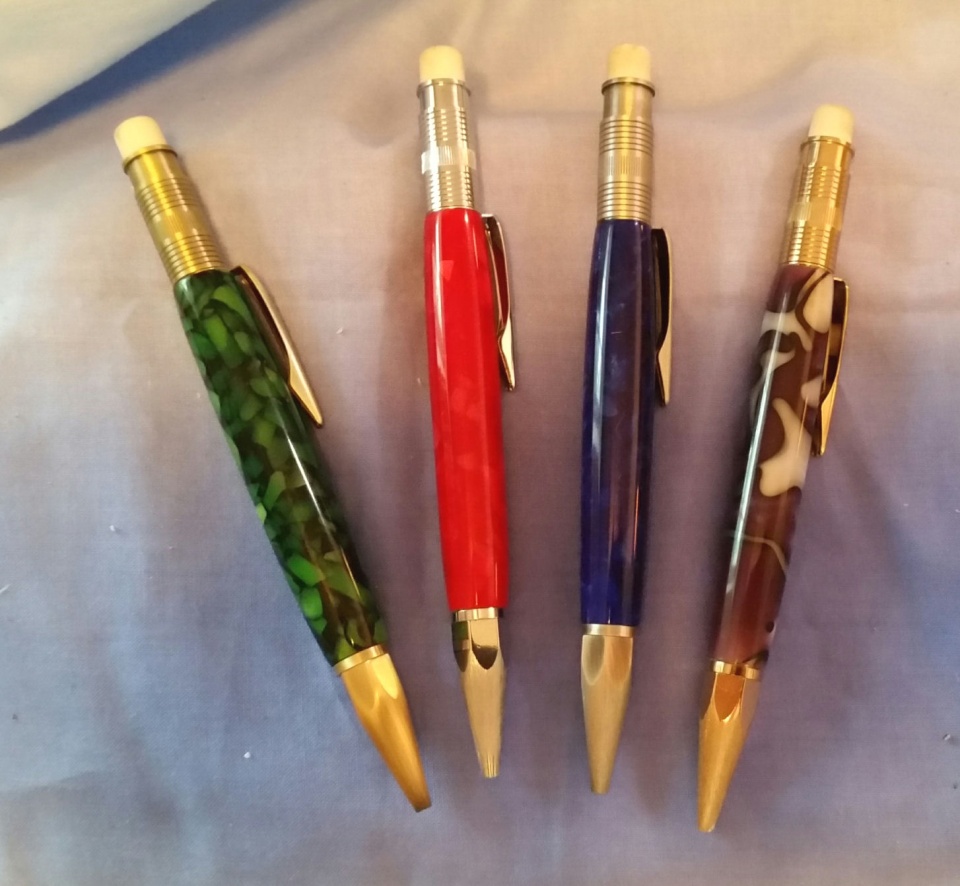 I liked PSI's new mechanical pencil kit so I ordered the starter kit (before they sold out) with all 4 platings, the drill bit, and the bushings. It was an easy turn, single tube, same bushings as the Vertex click and pencil kits. Very smooth operating. Uses the same lead as the Vertex pencil. Fun kit to make and a hit with 3 ladies who like using pencils. I kept the first (blue) one.