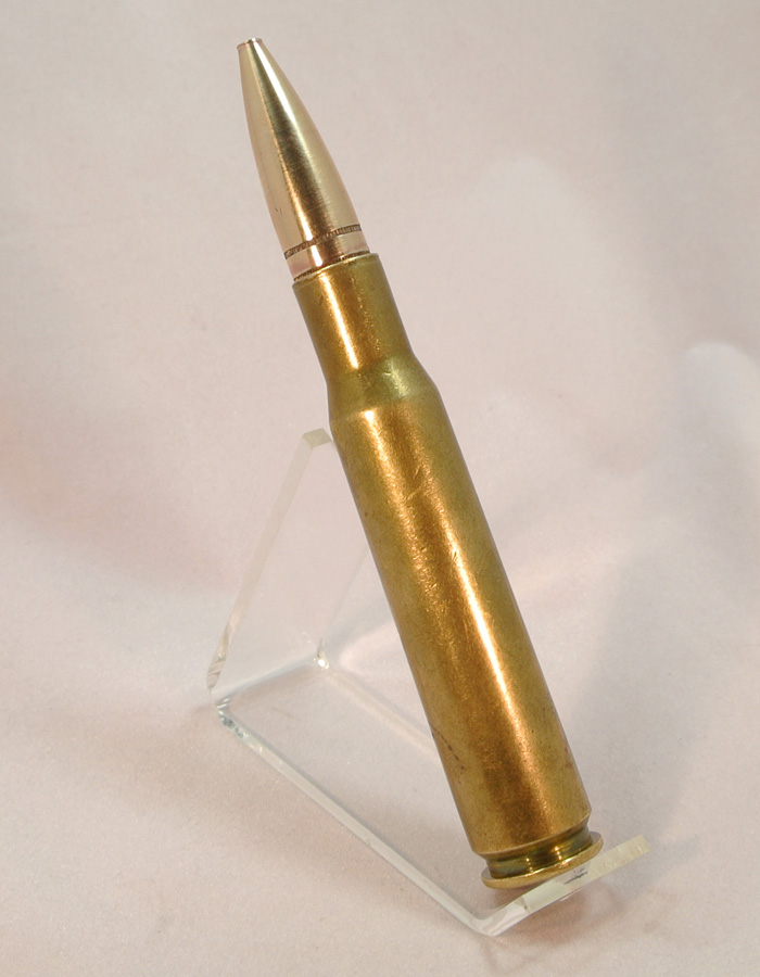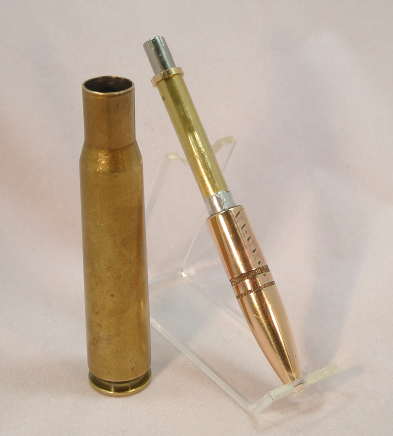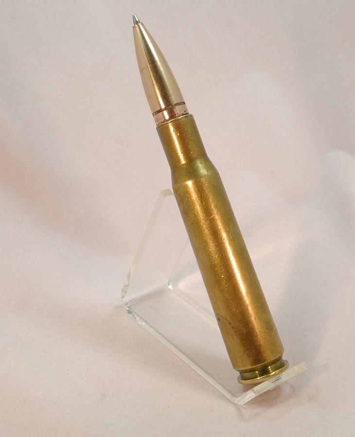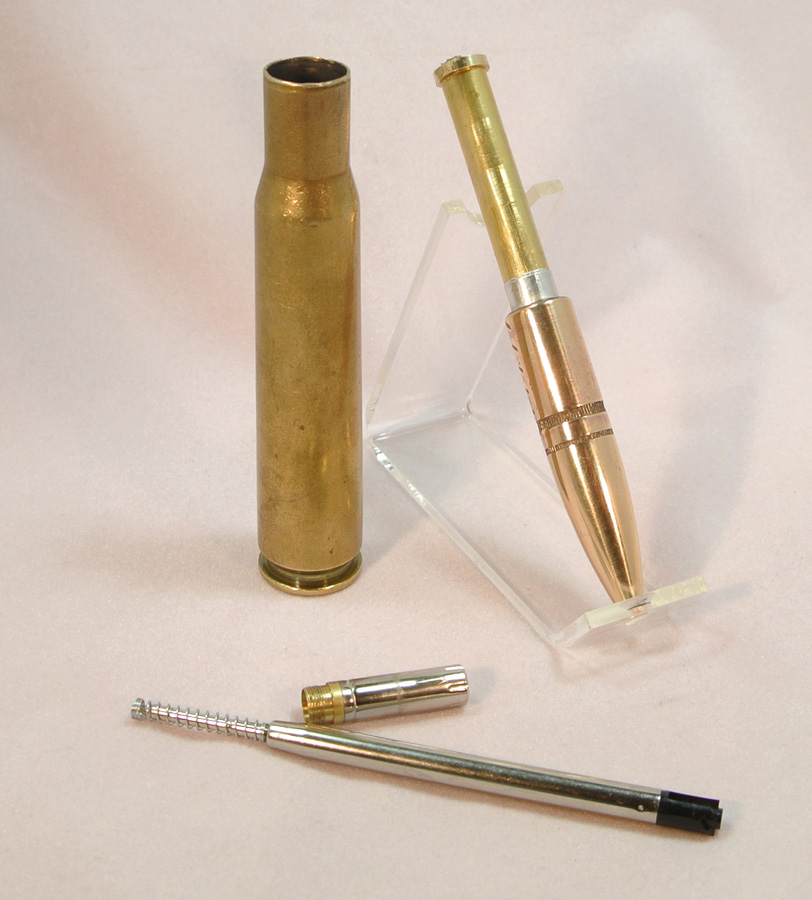 I bought the .50 cal brass and pre-drilled bullets from bruce119 here on IAP. The hole for the refill point has to be drilled out larger as it was drilled for a Cross refill.