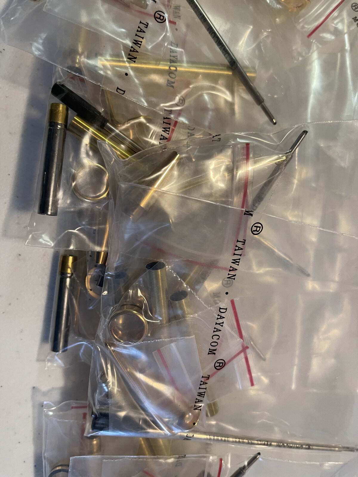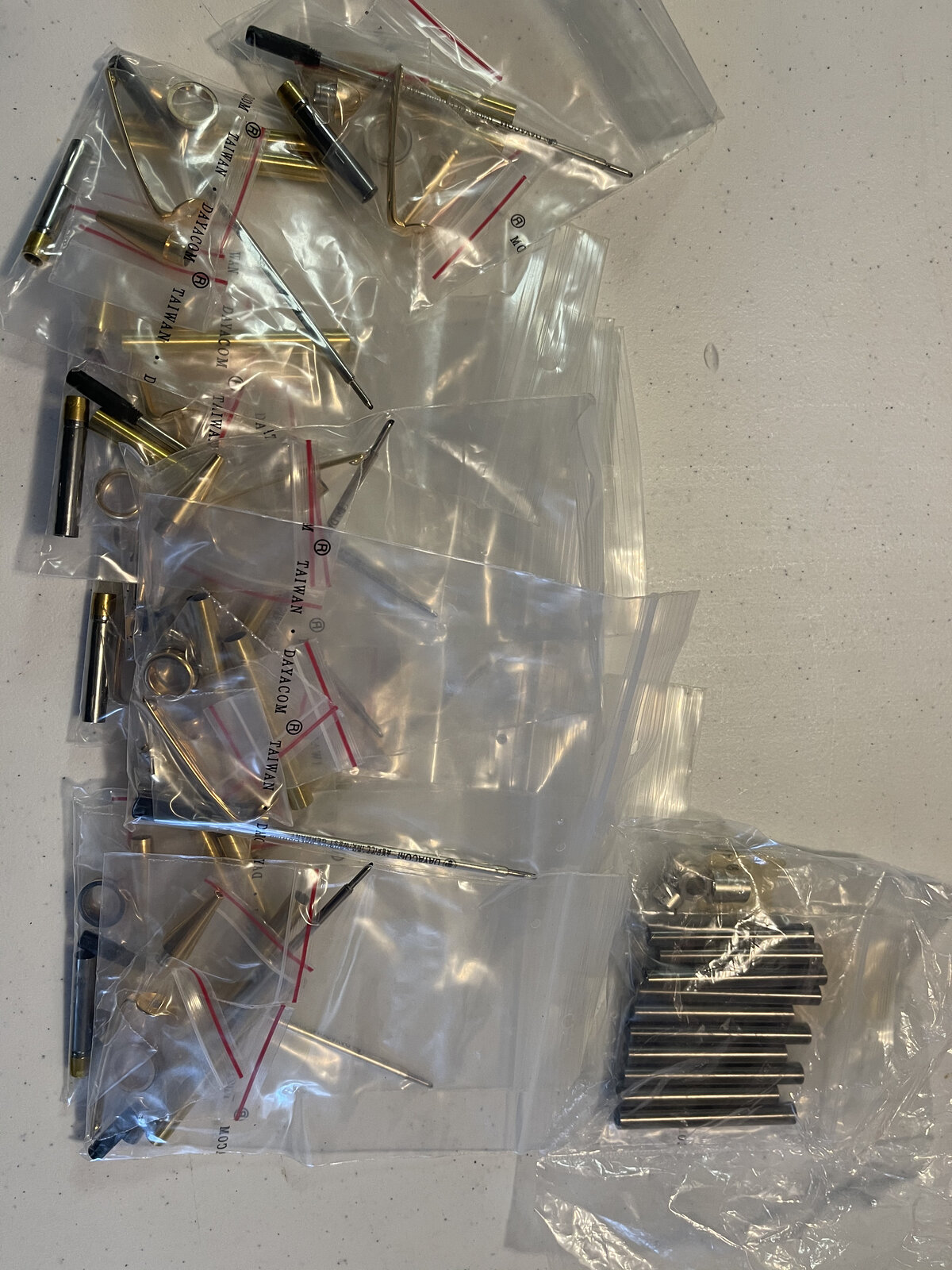 Ten 7mm Euro 24k gold pen kits from CS USA with extra tubes and bushings. $25.00 shipped USPS flat rate CONUS. Paypal.