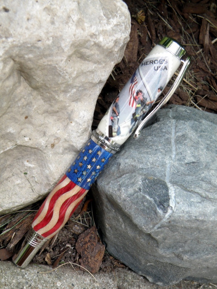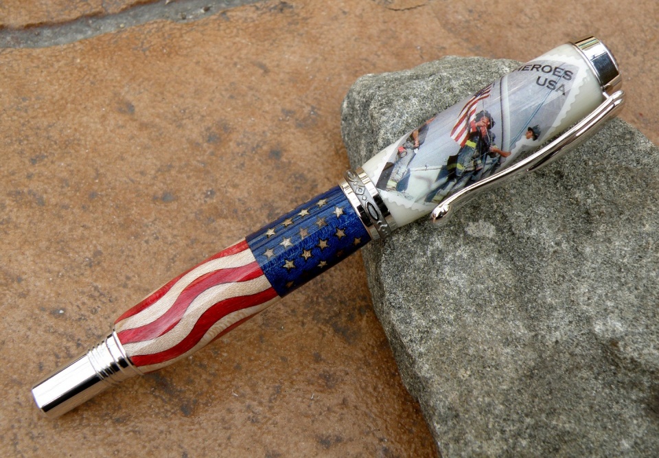 I then turned some alternate ivory for the cap and laid on the 9/11 stamps covered with more coats of CA then I can count.