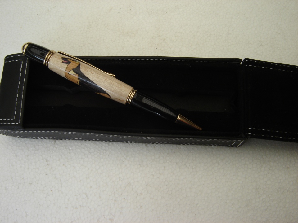 I needed to make a Pen for German Shepherd Lover, so the only thing I could think off, within the Time Frame, was to use a Laser Cut Blank, which I got straight away from Ed and Dawn, of Exotic Blanks, along with their Traditional Turners Food of "M & Ms".