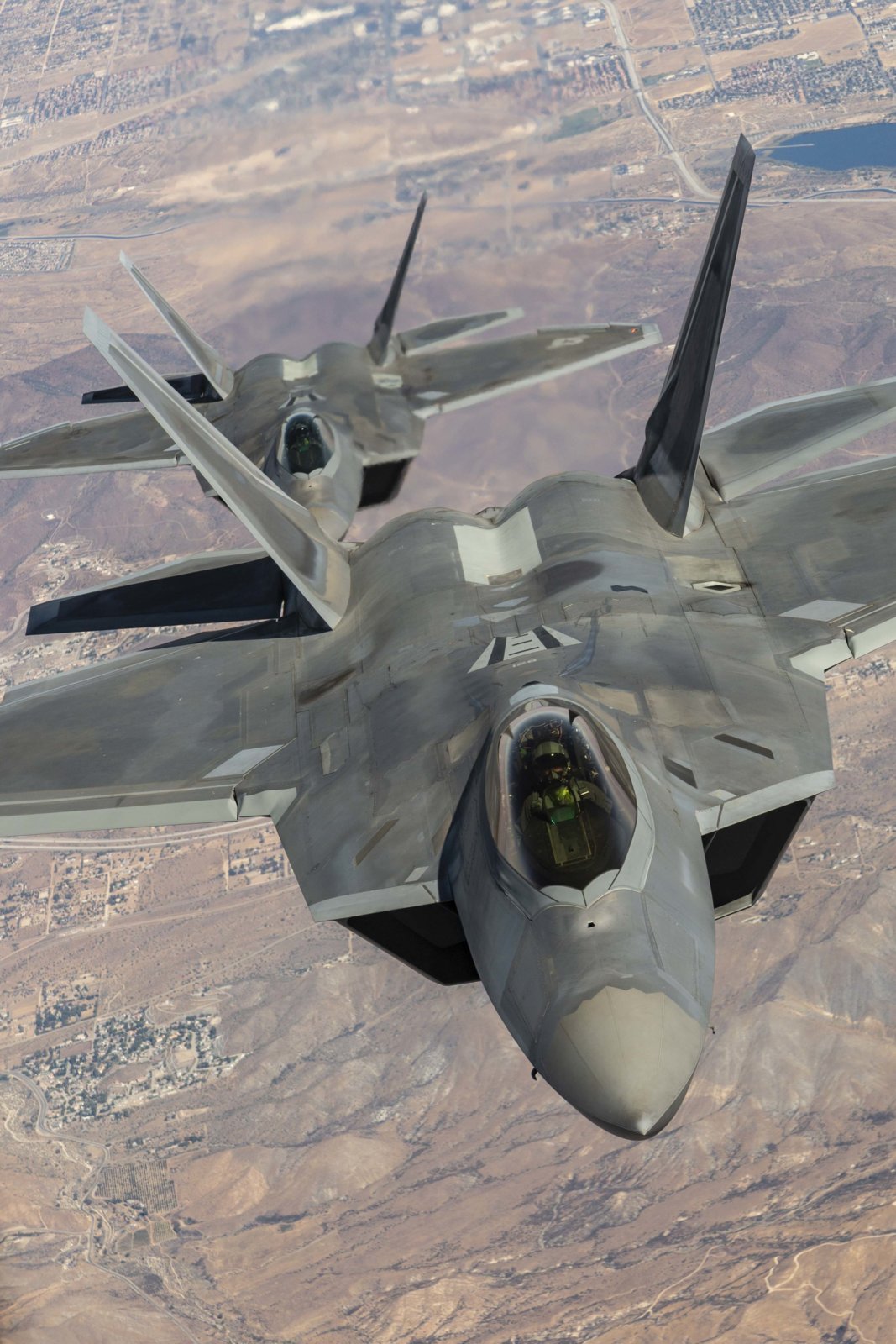 "Hey Mark! Attached are some pictures that have been released from our Public Affairs office. These were taken on a test/test support mission I flew a couple weeks ago by one of our Air Force photographers. These are F-22 Raptors over the LA basin and the Pacific Ocean. I'm not sure if they're worth forwarding on but they are definitely cool photos that embody the spirit of our homeland defense and air superiority. Support personnel and pilots are some of the men and women who are receiving the pens donated by the IAP."