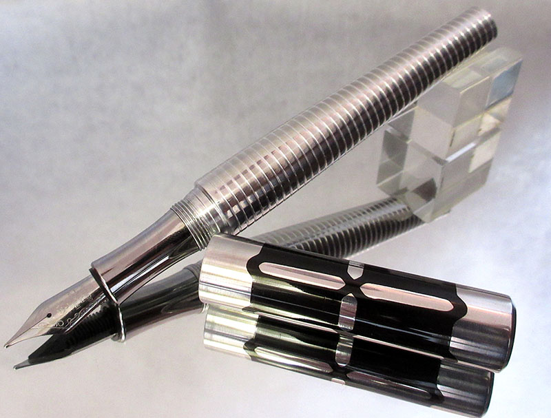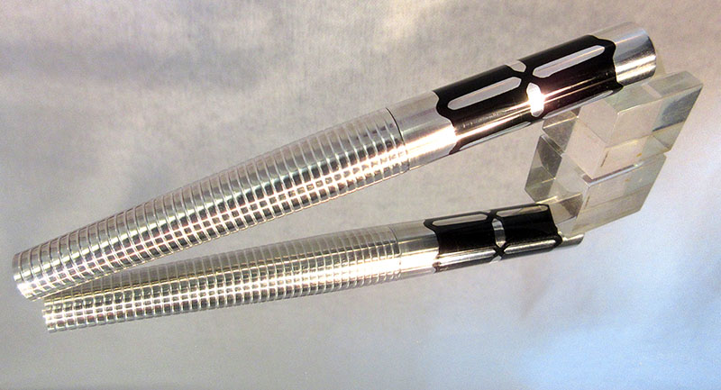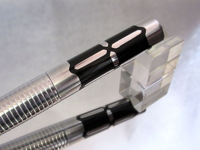 I turned the pen body with quite a significant taper, and then ribbed it with light cuts spaced 2mm apart.