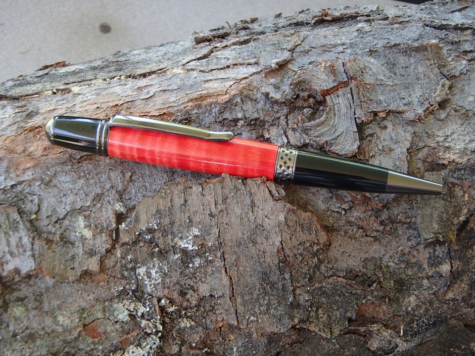 I experimented with some old aniline dye and a piece of curly maple. The wood was left over from making small file handles 15 years ago. The walnut was from a pile of cut offs I bought when I was into scroll sawing. I kind of like last weeks salvage work.