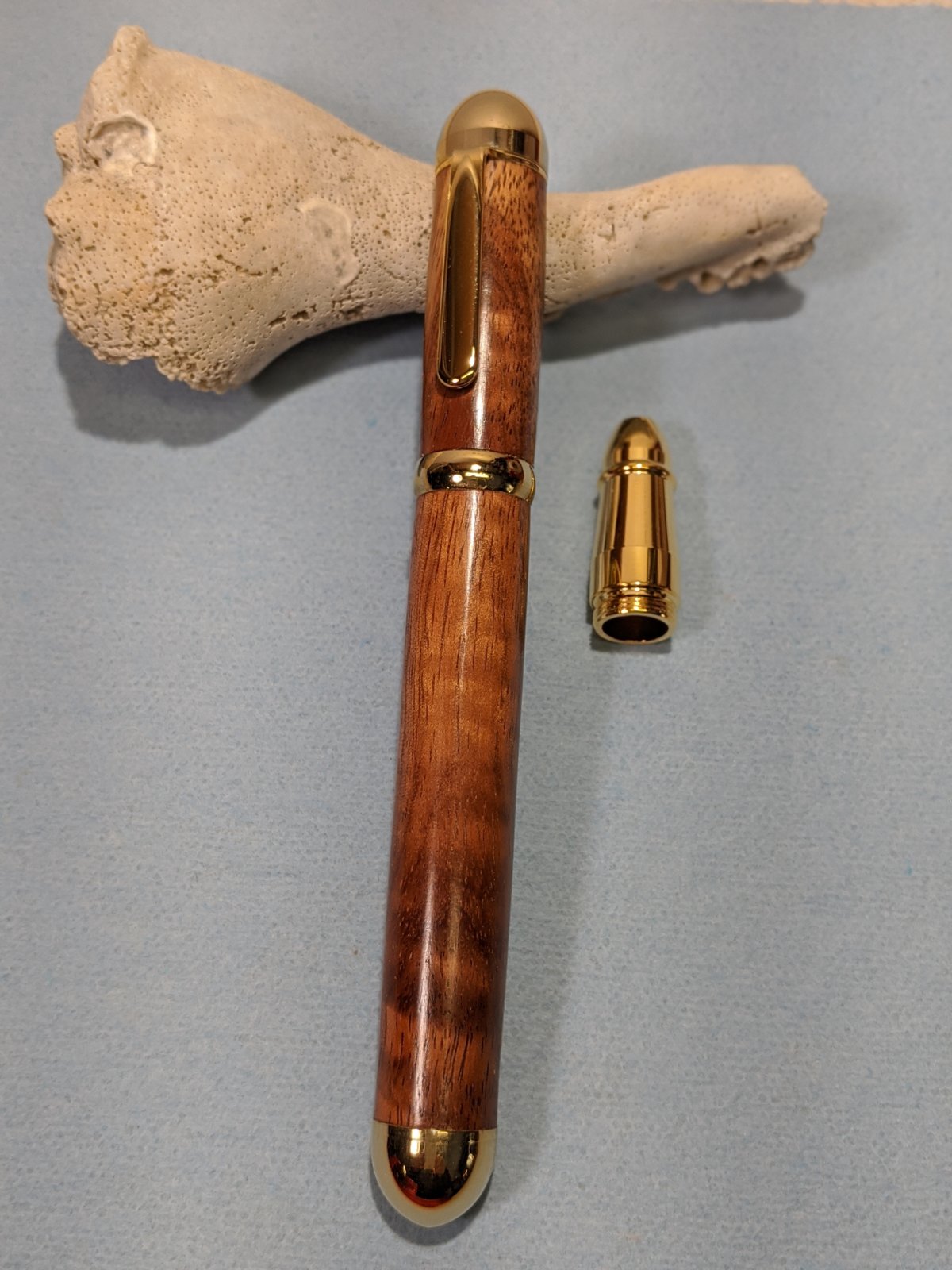 The wood is Koa and though there is some Curly in it the photo doesn't really do it justice. This pen holder was made for my daughter in law who has MS and uses sharpie markers to write with. The pen holder is big, it takes a 14 and 15mm drill bit for the blanks. There was a discussion about this kit a while back so I'll give my opinion on it, BUT, it's just my opinion and I respect the opinions of others.