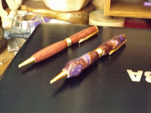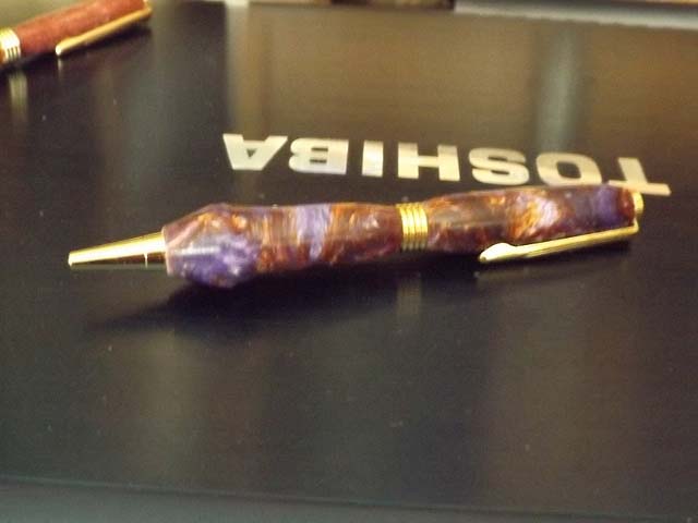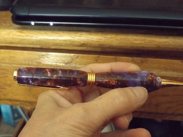 The acrylic one is plenty chucky but that couldn't be helped. That blank was so full of bubbles that I came close to throwing it away. I had a dilly of a time working with it but I was able to save it. It is bronze and violet and I won't order that one again unless it is made better than it was. I think when it was made the bubbles were not all out and it was full as I kept getting catch after catch. The other one is purple heart and it turned out fairly good. I have one more purple heart blank left and I may start that one tomorrow.. Going to go lie down now Take care Fay