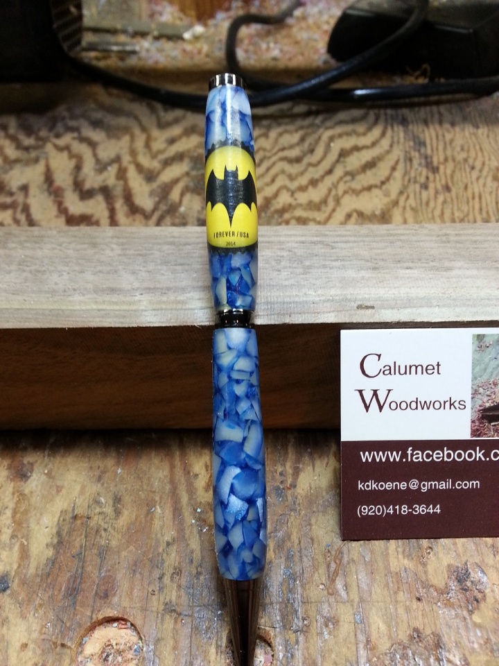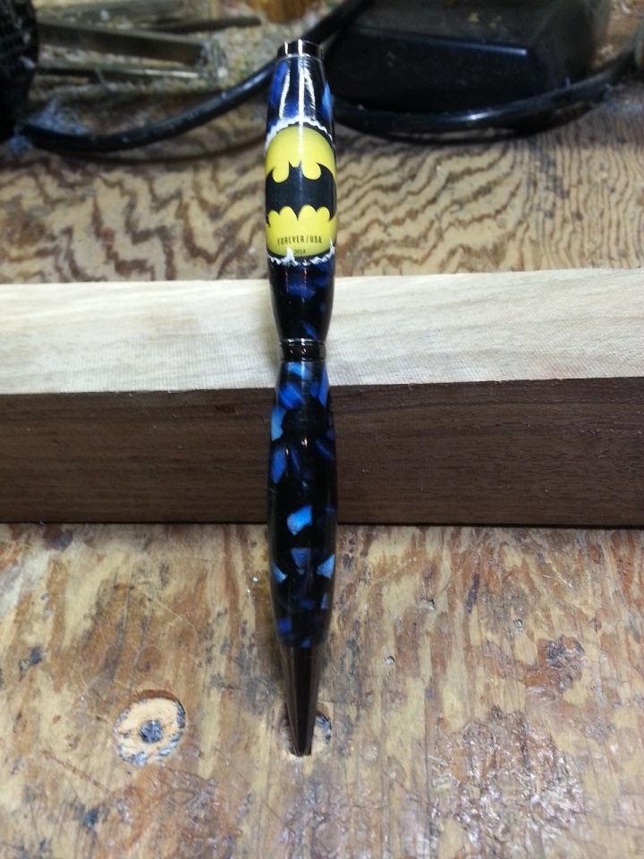 I've been playing around with adding stamps to pens that I have already turned. I am doing this because I do not have the space/equipment/time to learn how to cast blanks....yet. So here are two more attempts at adding stamps. The results are good...but I can get better.